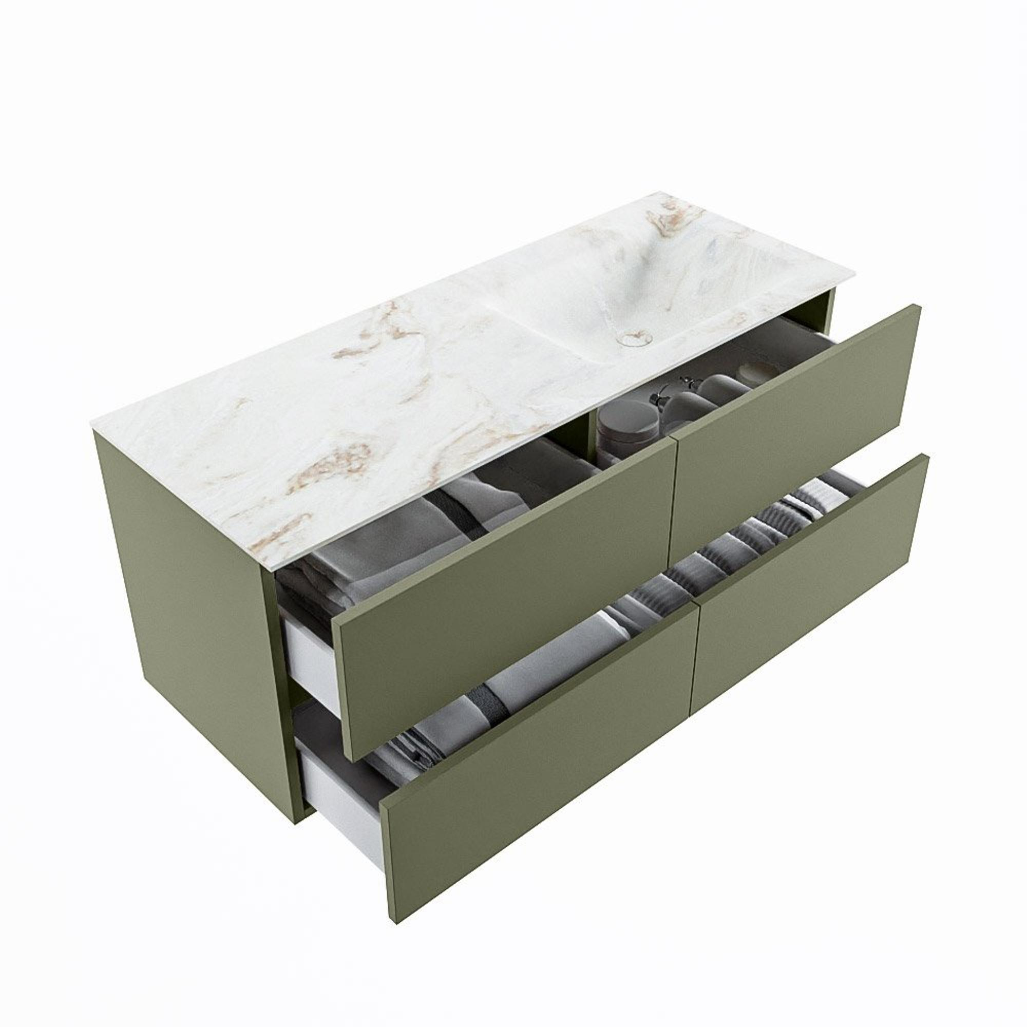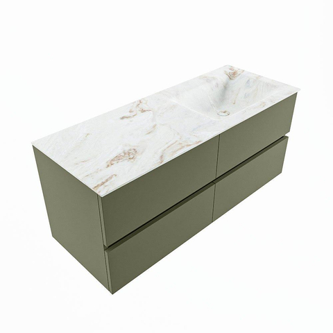 MONDIAZ VICA-DLUX Badkamermeubelset - 120cm - onderkast army - 4 lades - inbouw wastafel cloud rechts - zonder kraangaten - 60cm hoge versie - frape