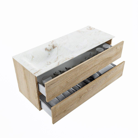 MONDIAZ VICA-DLUX Badkamermeubelset - 120cm - onderkast washed oak - 2 lades - inbouw wastafel cloud links - zonder kraangaten - 60cm hoge versie - frape