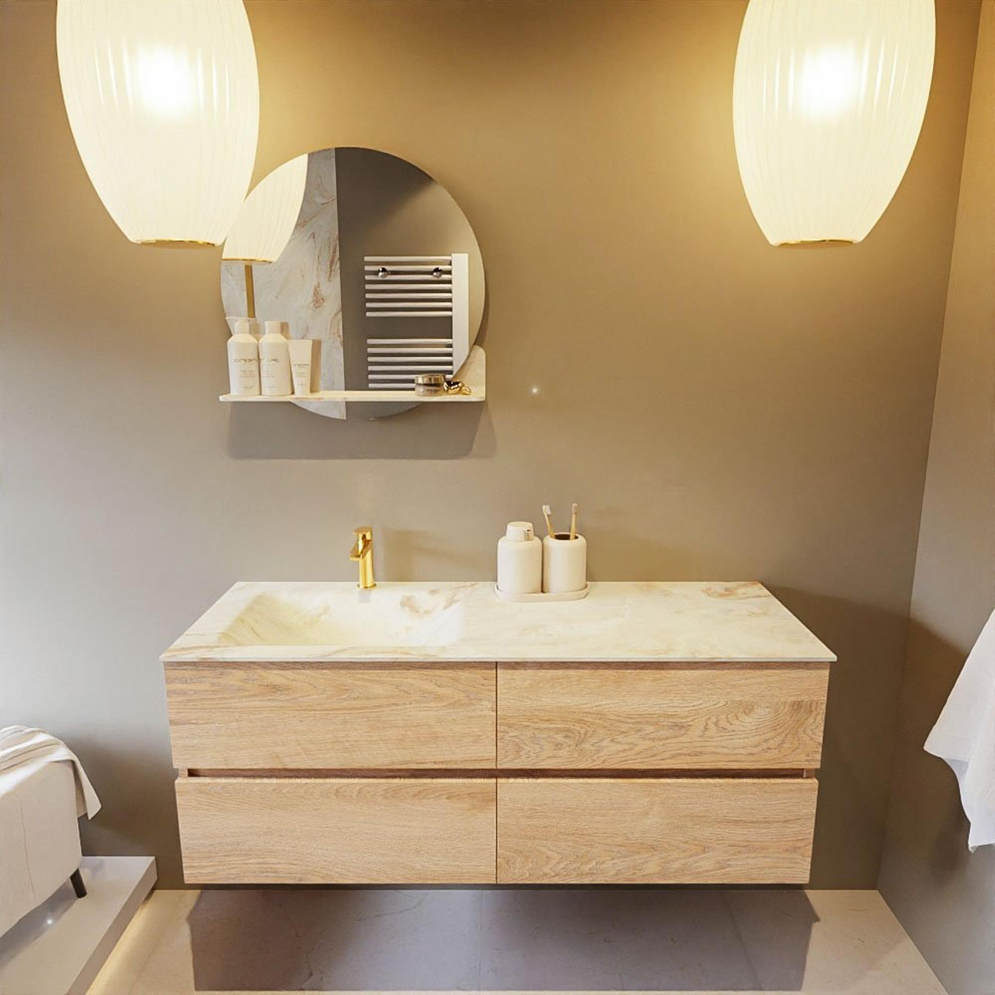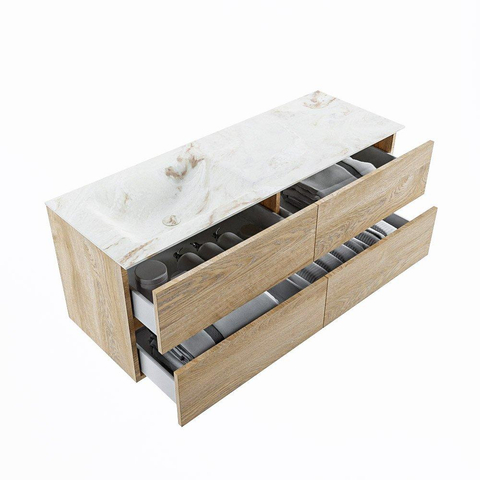 MONDIAZ VICA-DLUX Badkamermeubelset - 130cm - onderkast washed oak - 4 lades - inbouw wastafel cloud links - 1 kraangat - 60cm hoge versie - frape