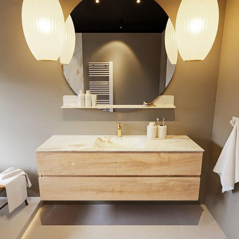 MONDIAZ VICA-DLUX Badkamermeubelset - 150cm - onderkast washed oak - 2 lades - inbouw wastafel cloud midden - 1 kraangat - 60cm hoge versie - frape
