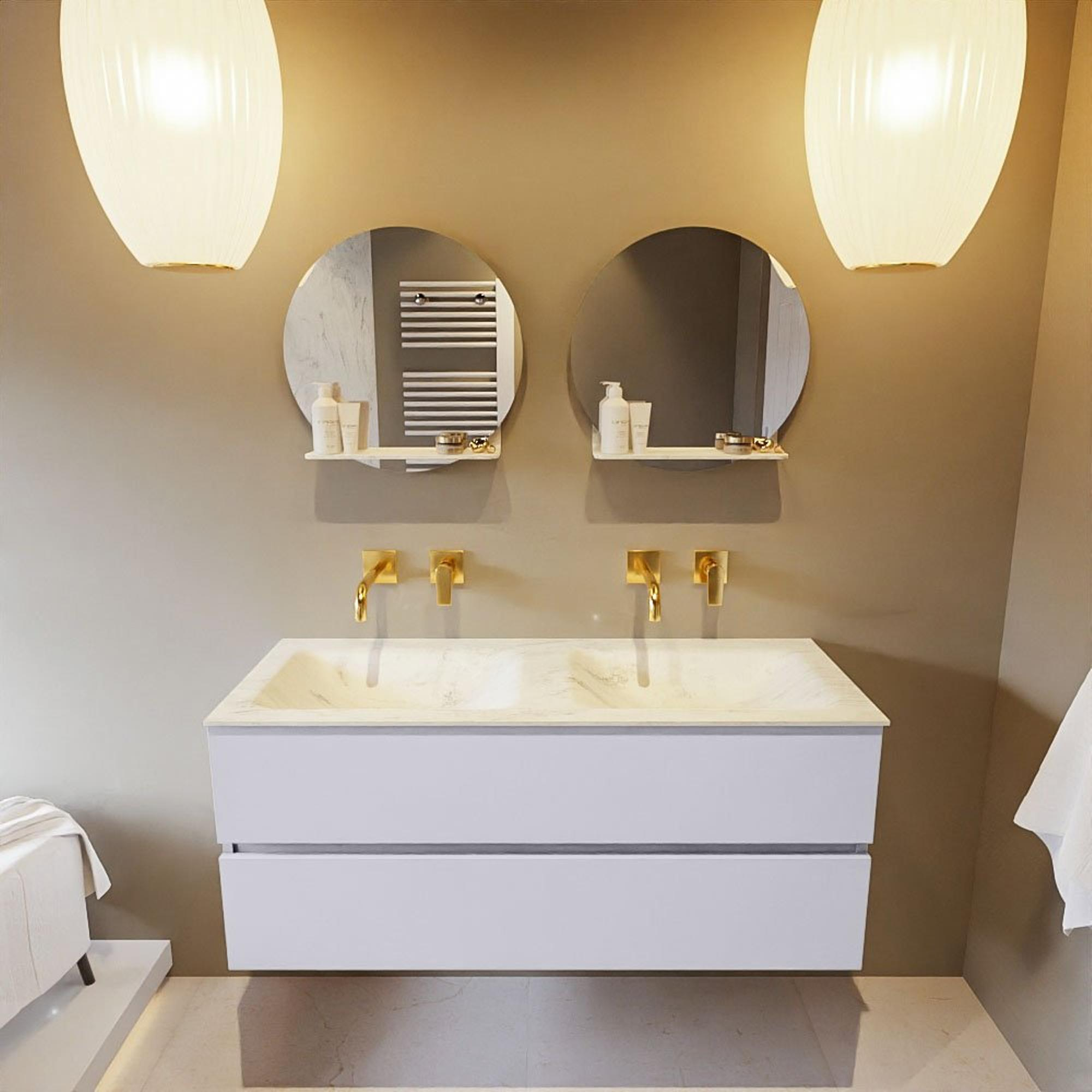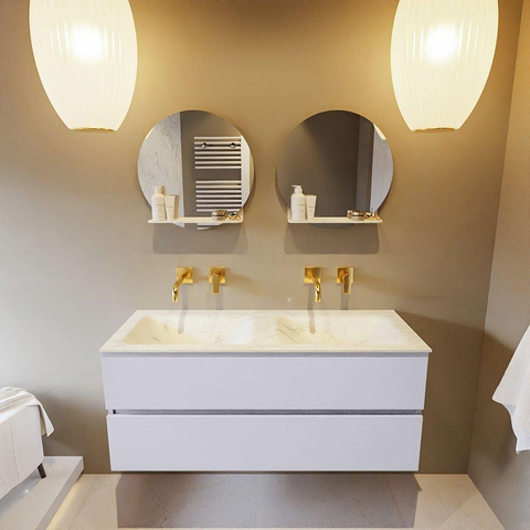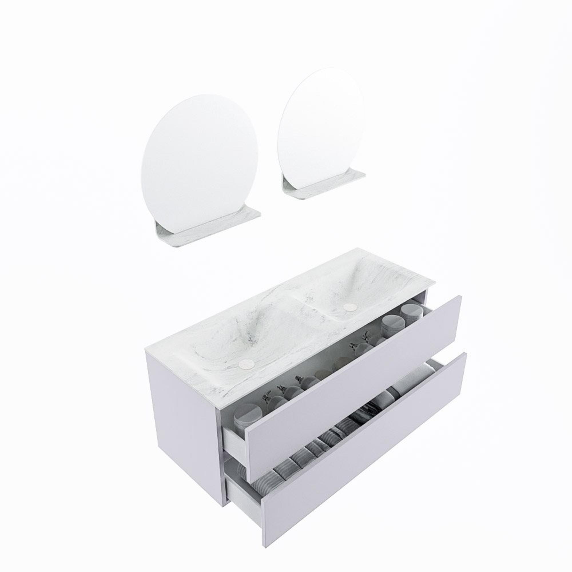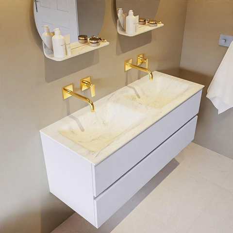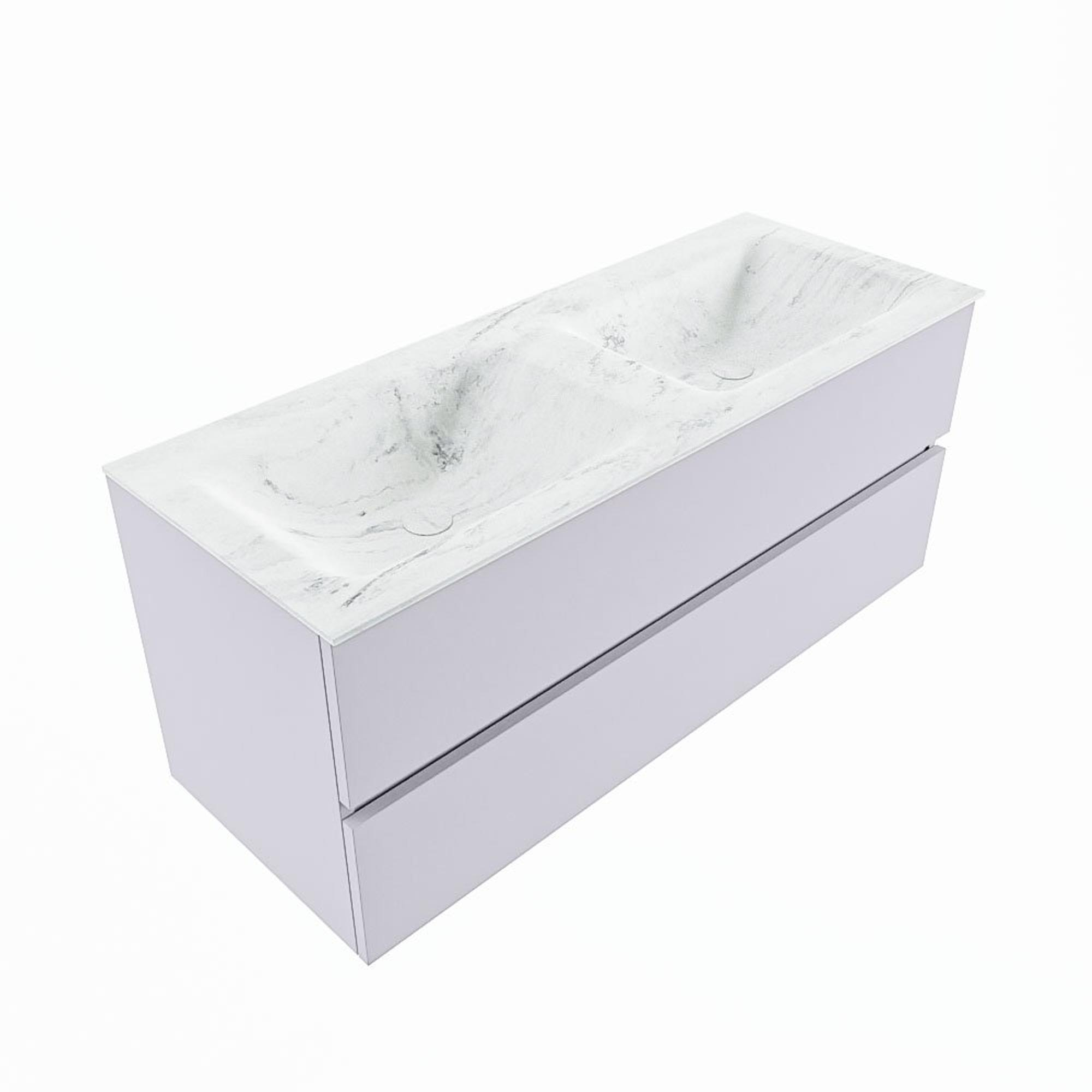 MONDIAZ VICA-DLUX Badkamermeubelset - 120cm - onderkast cale- 2 lades - inbouw wastafel cloud dubbel - zonder kraangaten - 60cm hoge versie - opalo