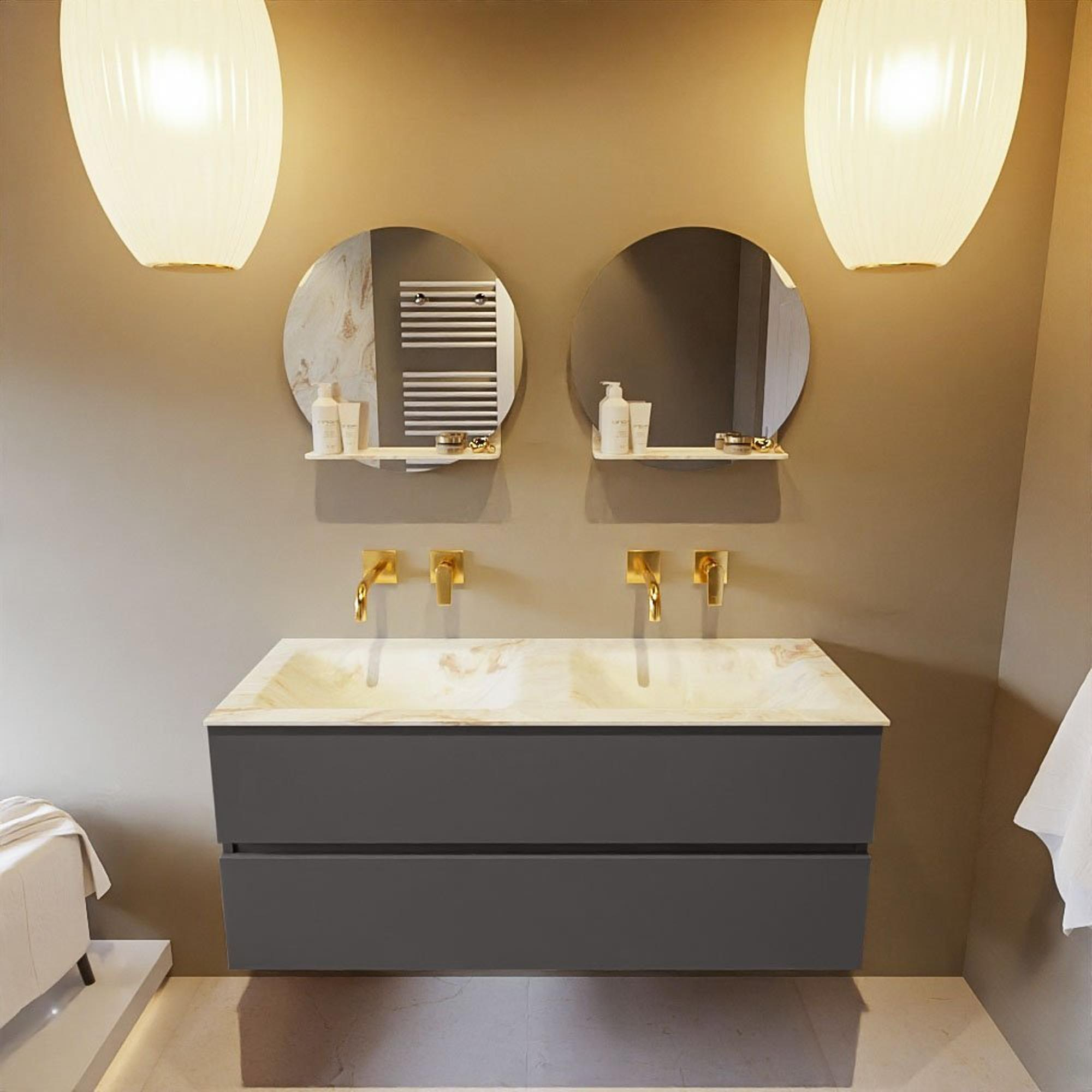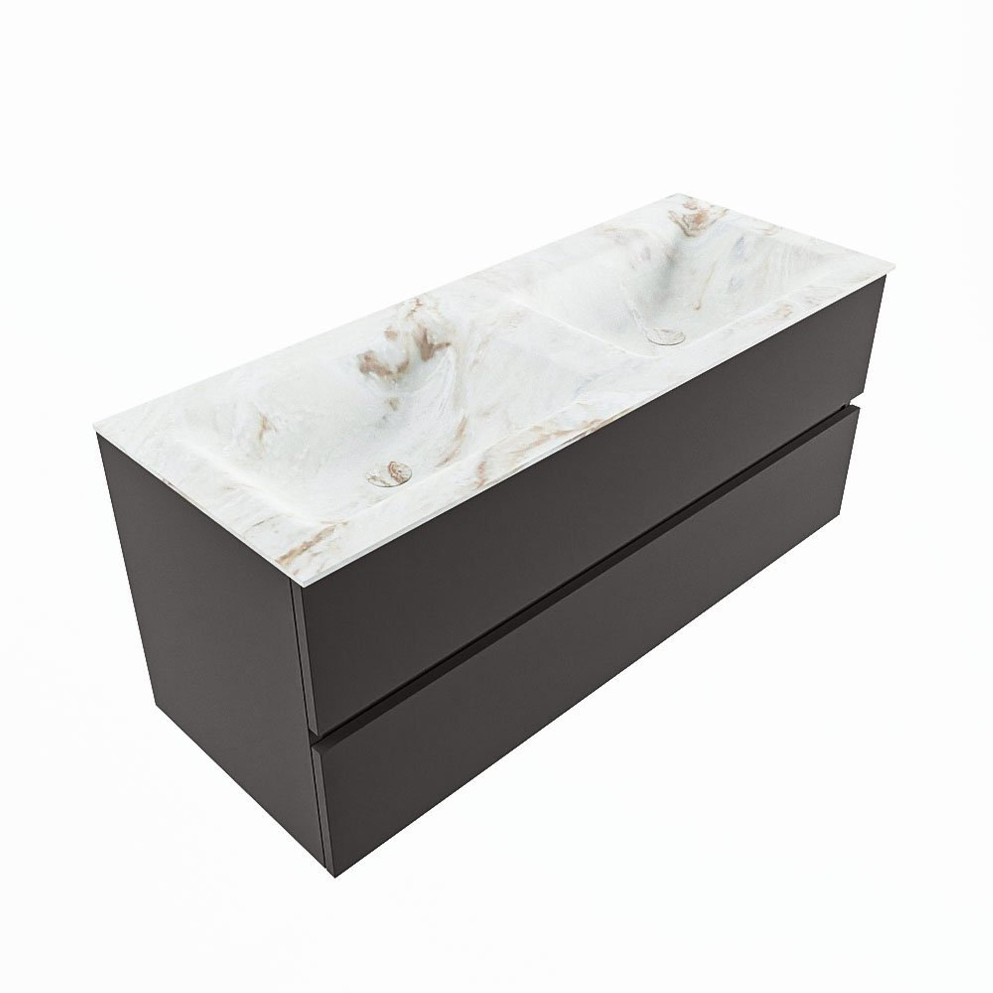 MONDIAZ VICA-DLUX Badkamermeubelset - 120cm - onderkast dark grey - 2 lades - inbouw wastafel cloud dubbel - zonder kraangaten - 60cm hoge versie - frape