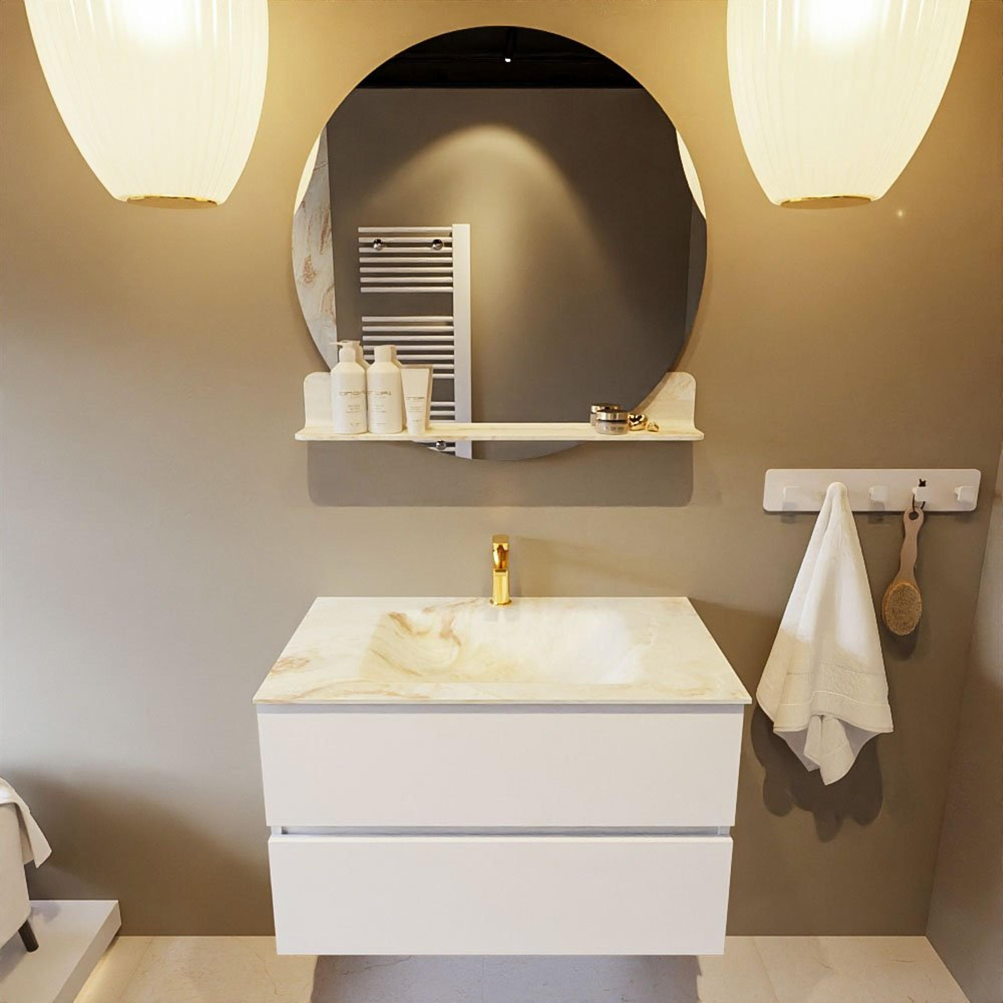 MONDIAZ VICA-DLUX Badkamermeubelset - 80cm - onderkast talc - 2 lades - inbouw wastafel cloud midden - 1 kraangat - 60cm hoge versie - frape