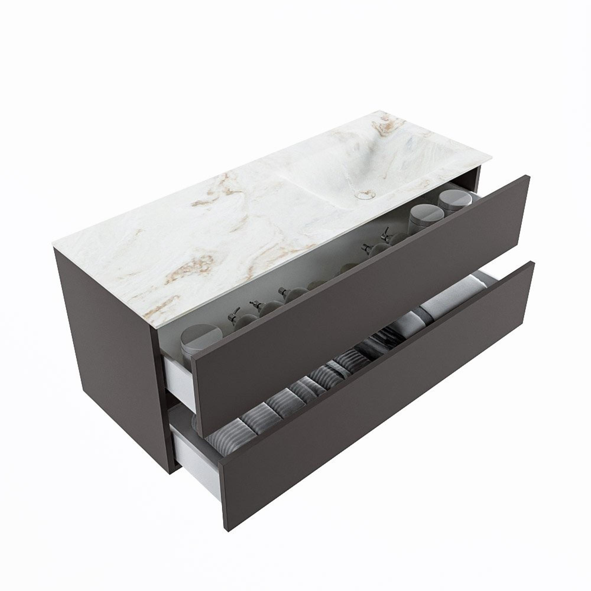 MONDIAZ VICA-DLUX Badkamermeubelset - 120cm - onderkast dark grey - 2 lades - inbouw wastafel cloud rechts - 1 kraangat - 60cm hoge versie - frape
