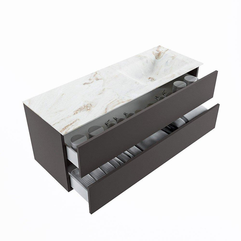 MONDIAZ VICA-DLUX Badkamermeubelset - 130cm - onderkast dark grey - 2 lades - inbouw wastafel cloud rechts - 1 kraangat - 60cm hoge versie - frape