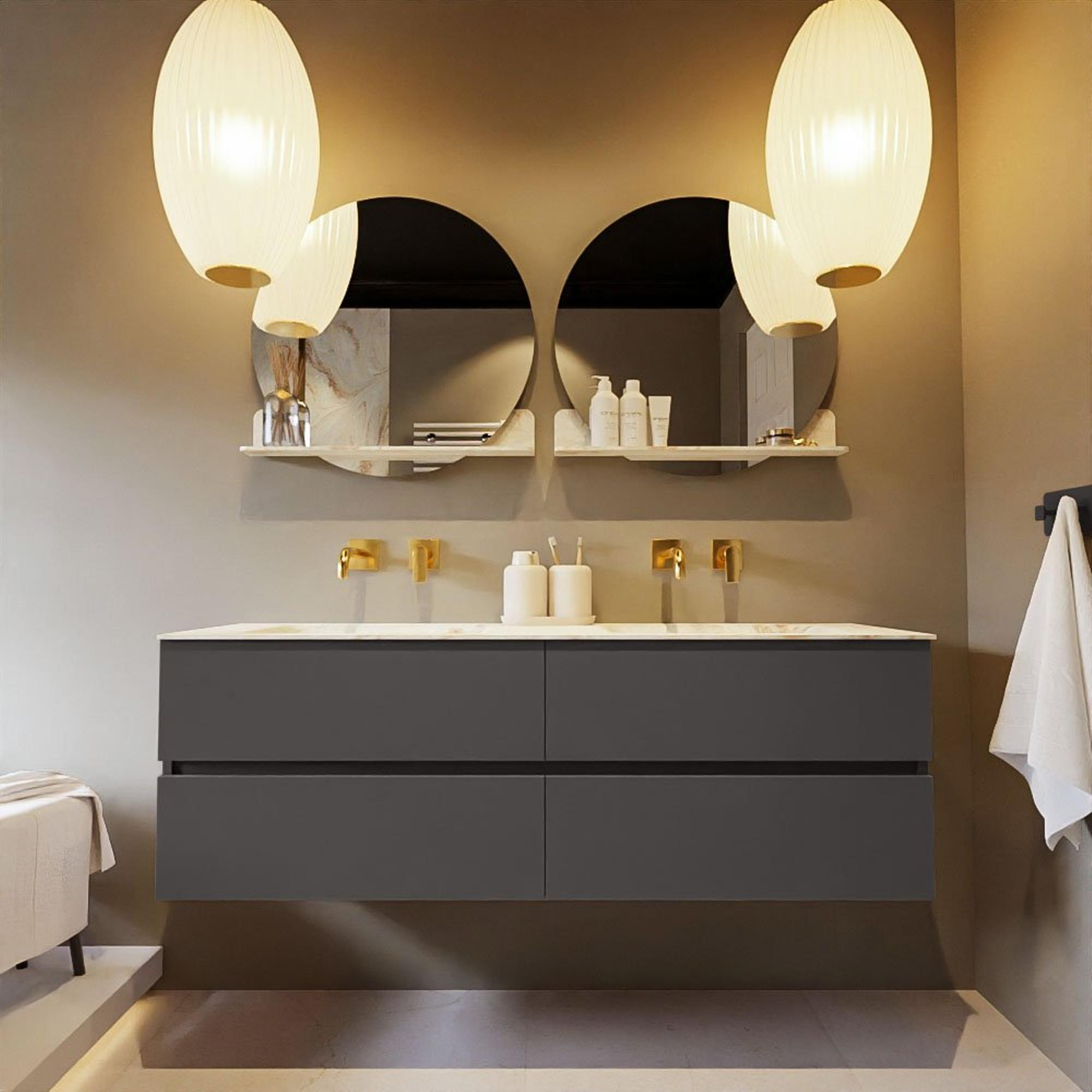 MONDIAZ VICA-DLUX Badkamermeubelset - 150cm - onderkast dark grey - 4 lades - inbouw wastafel cloud dubbel - zonder kraangaten - 60cm hoge versie - frape