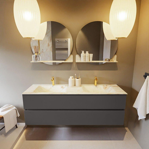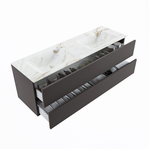 MONDIAZ VICA-DLUX Badkamermeubelset - 150cm - onderkast dark grey - 2 lades - inbouw wastafel cloud dubbel - 2 kraangaten - 60cm hoge versie - frape