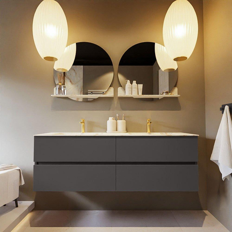 MONDIAZ VICA-DLUX Badkamermeubelset - 150cm - onderkast dark grey - 4 lades - inbouw wastafel cloud dubbel - 2 kraangaten - 60cm hoge versie - frape