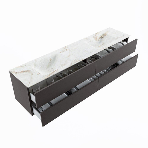 MONDIAZ VICA-DLUX Badkamermeubelset - 200cm - onderkast dark grey - 4 lades - inbouw wastafel cloud dubbel - 2 kraangaten - 60cm hoge versie - frape