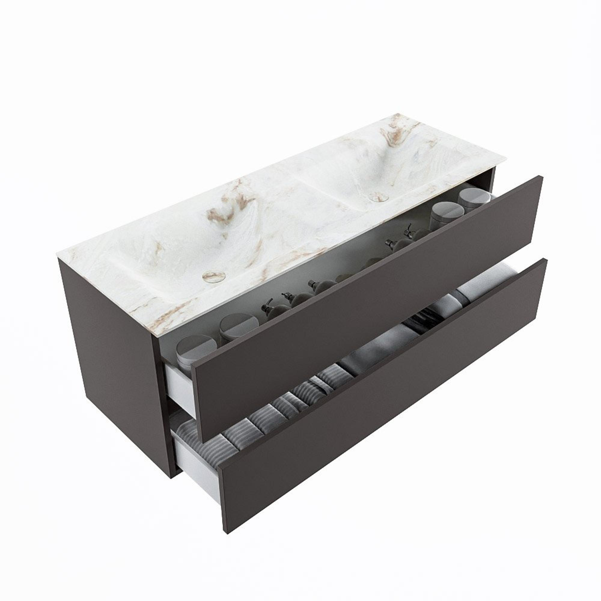MONDIAZ VICA-DLUX Badkamermeubelset - 130cm - onderkast dark grey - 2 lades - inbouw wastafel cloud dubbel - zonder kraangaten - 60cm hoge versie - frape