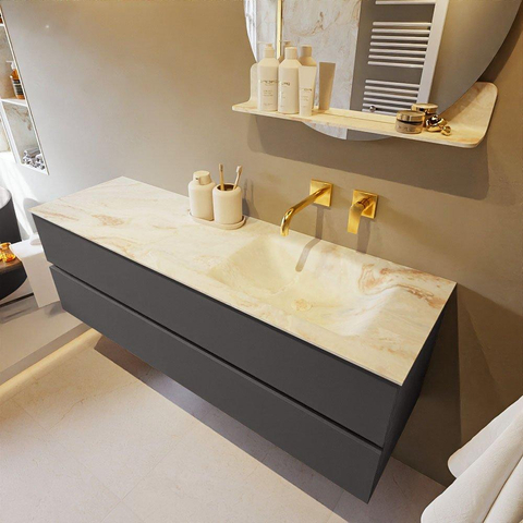 MONDIAZ VICA-DLUX Badkamermeubelset - 150cm - onderkast dark grey - 2 lades - inbouw wastafel cloud rechts - zonder kraangaten - 60cm hoge versie - frape