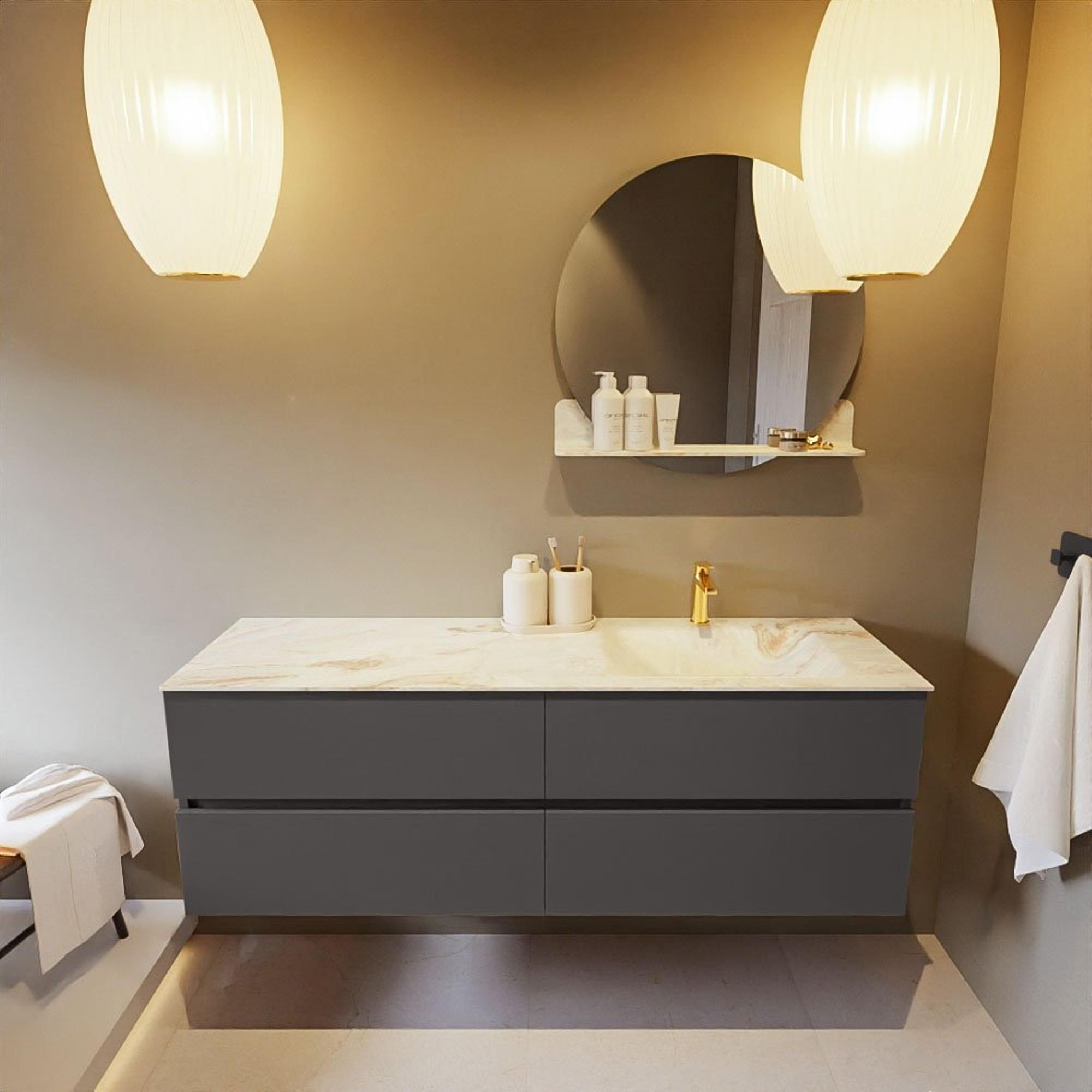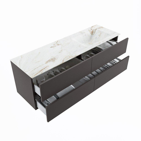 MONDIAZ VICA-DLUX Badkamermeubelset - 150cm - onderkast dark grey - 4 lades - inbouw wastafel cloud rechts - 1 kraangat - 60cm hoge versie - frape