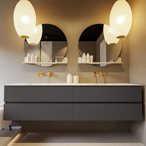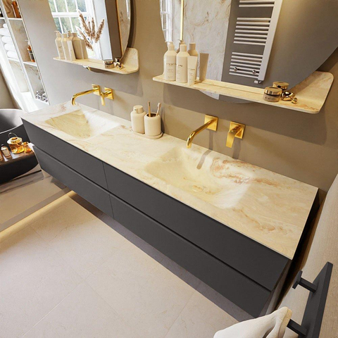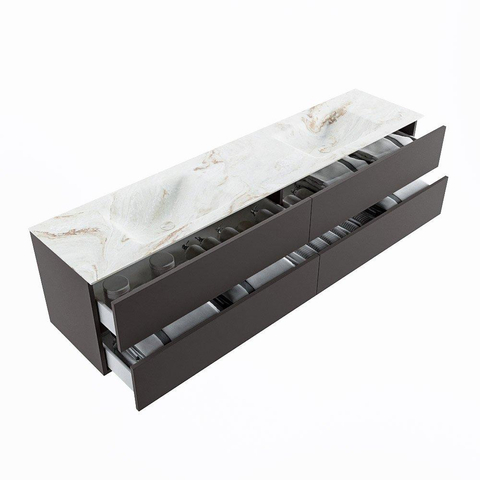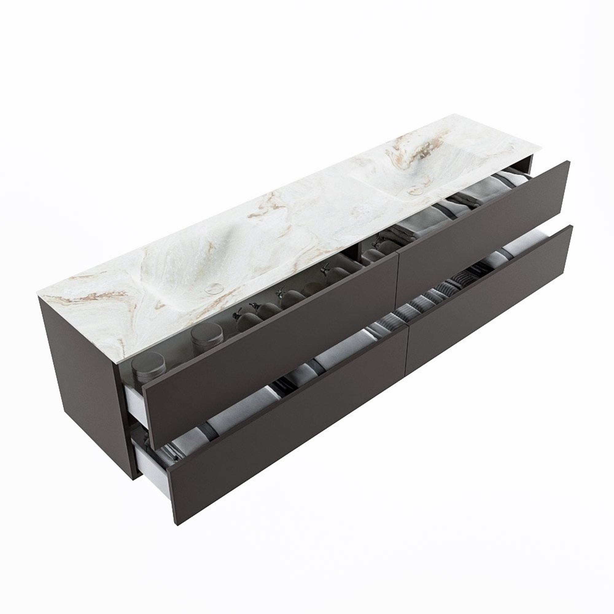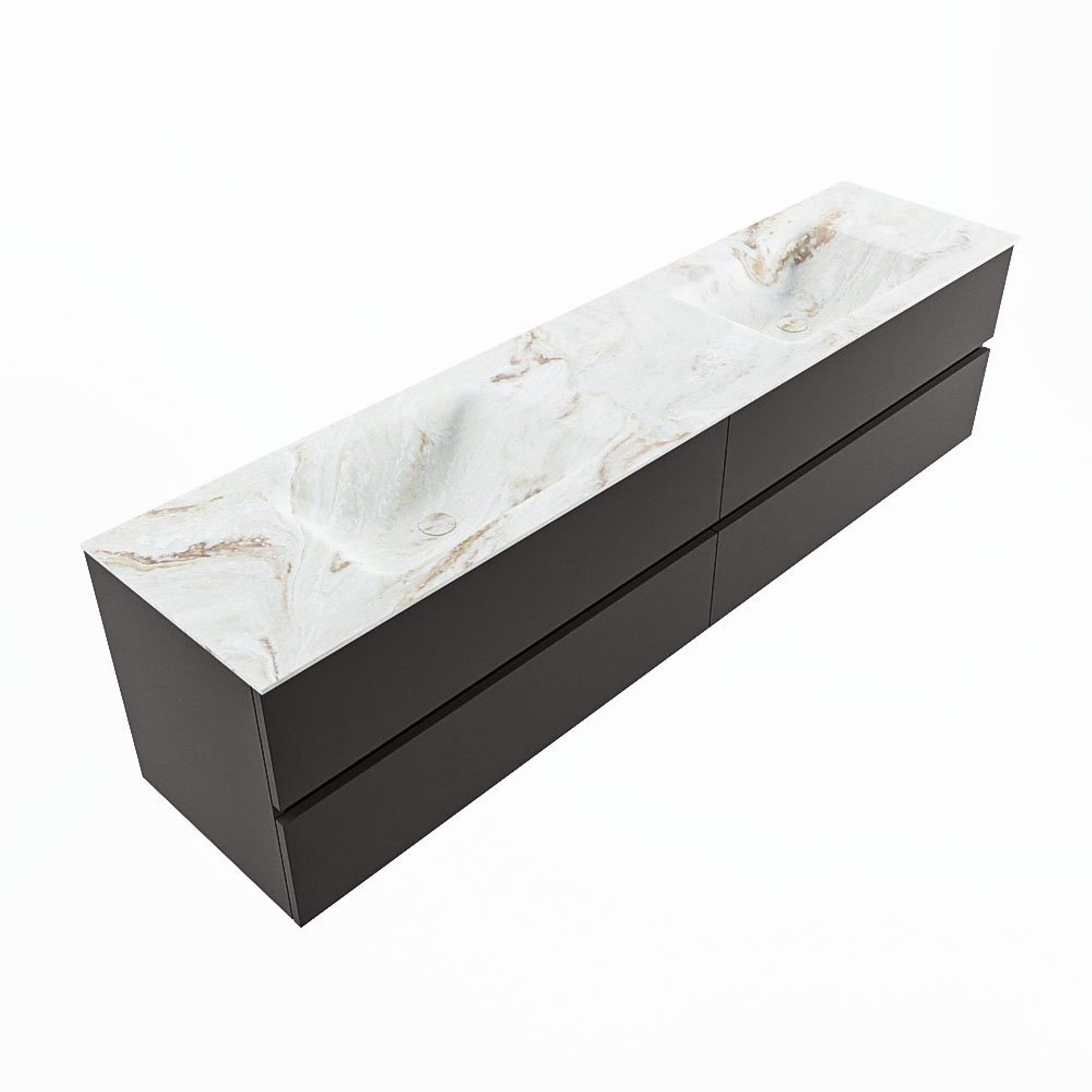 MONDIAZ VICA-DLUX Badkamermeubelset - 200cm - onderkast dark grey - 4 lades - inbouw wastafel cloud dubbel - zonder kraangaten - 60cm hoge versie - frape