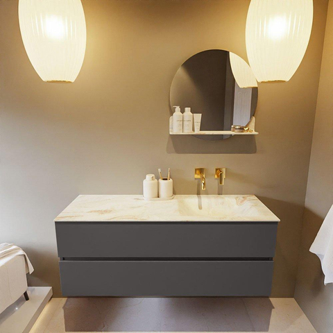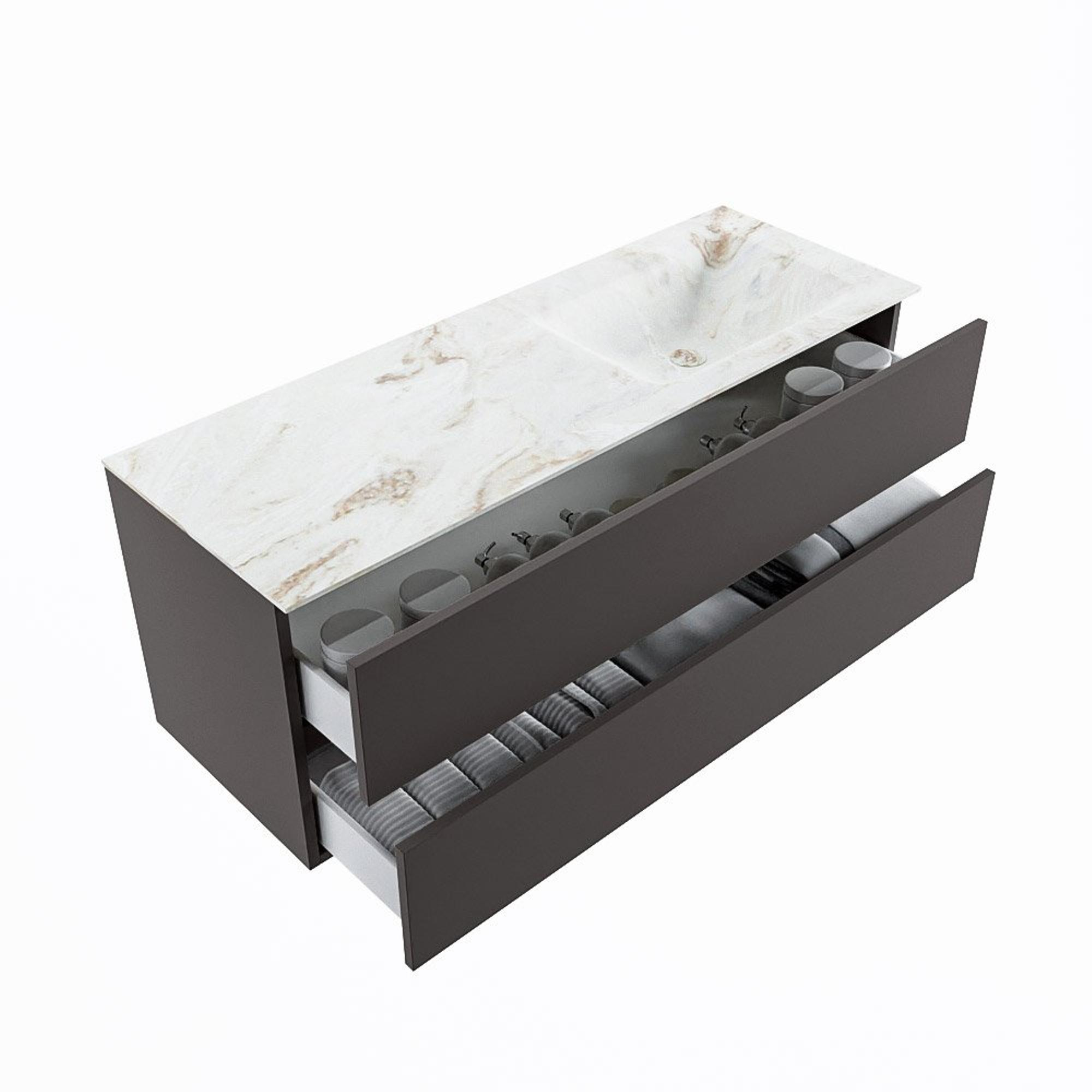 MONDIAZ VICA-DLUX Badkamermeubelset - 130cm - onderkast dark grey - 2 lades - inbouw wastafel cloud rechts - zonder kraangaten - 60cm hoge versie - frape