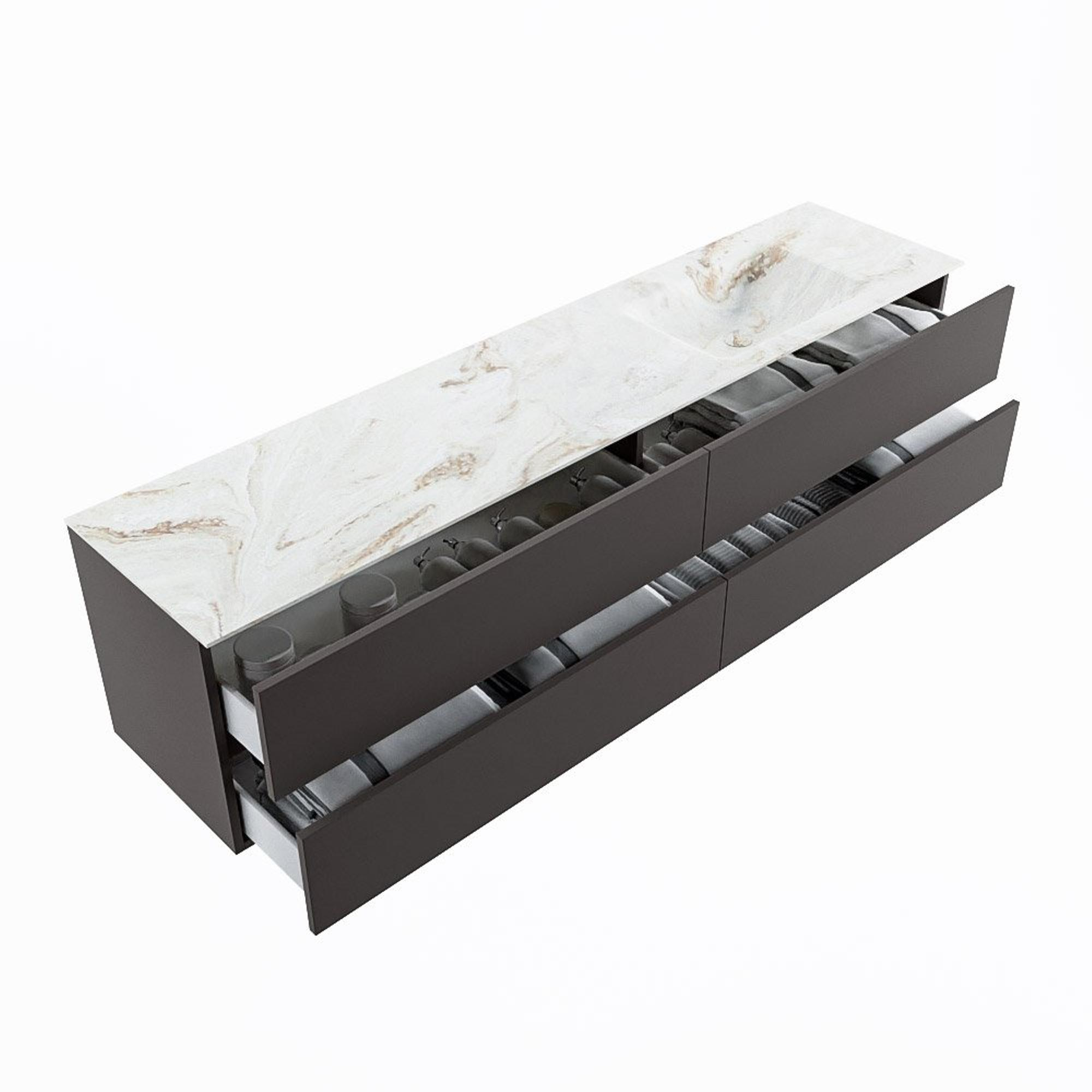 MONDIAZ VICA-DLUX Badkamermeubelset - 200cm - onderkast dark grey - 4 lades - inbouw wastafel cloud rechts - 1 kraangat - 60cm hoge versie - frape