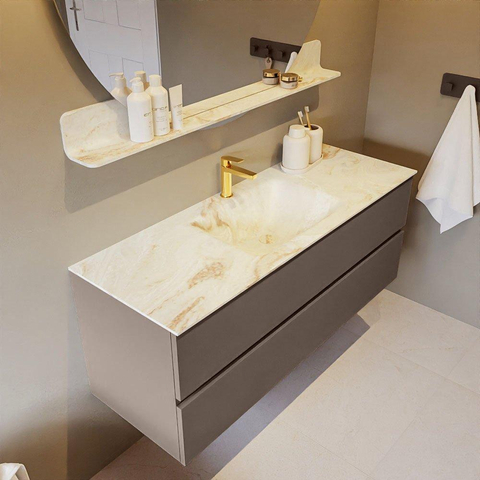MONDIAZ VICA-DLUX Badkamermeubelset - 130cm - onderkast smoke- 2 lades - inbouw wastafel cloud midden - 1 kraangat - 60cm hoge versie - frape