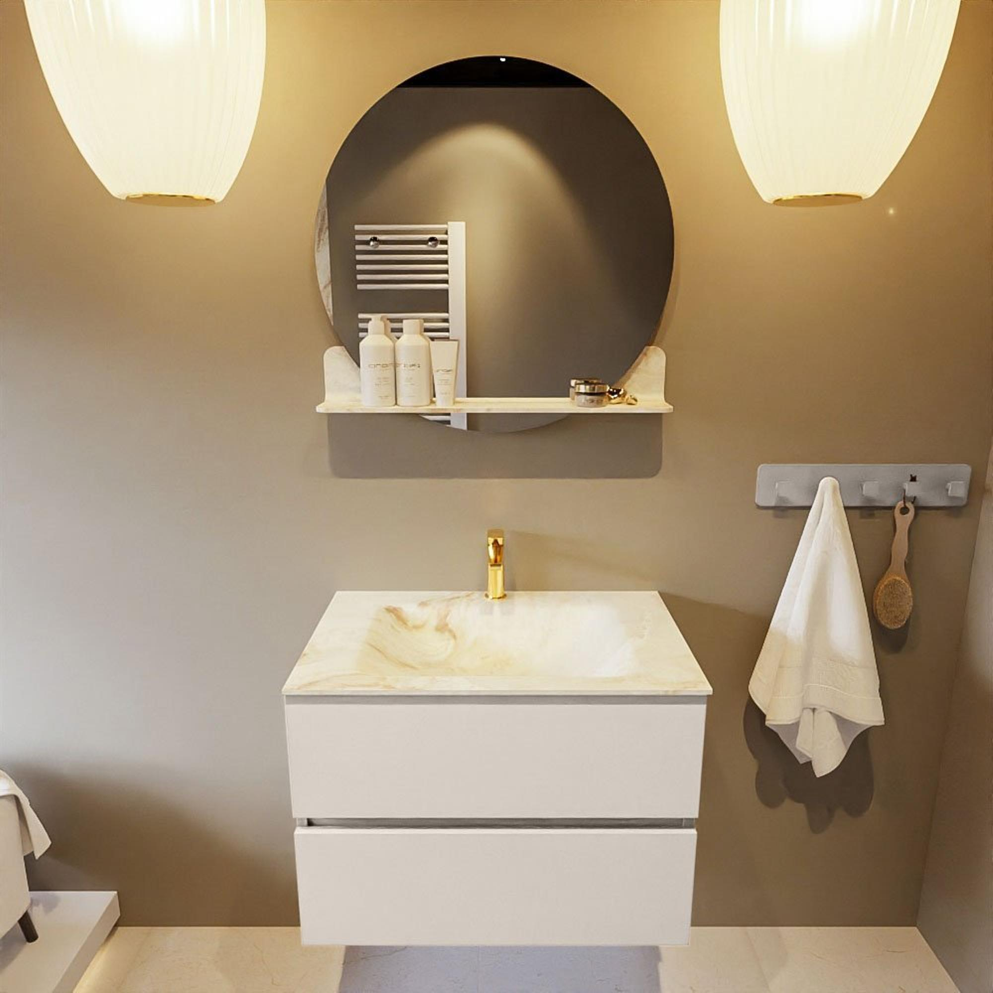MONDIAZ VICA-DLUX Badkamermeubelset - 70cm - onderkast linen- 2 lades - inbouw wastafel cloud midden - 1 kraangat - 60cm hoge versie - frape