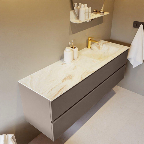 MONDIAZ VICA-DLUX Badkamermeubelset - 150cm - onderkast smoke- 2 lades - inbouw wastafel cloud rechts - 1 kraangat - 60cm hoge versie - frape