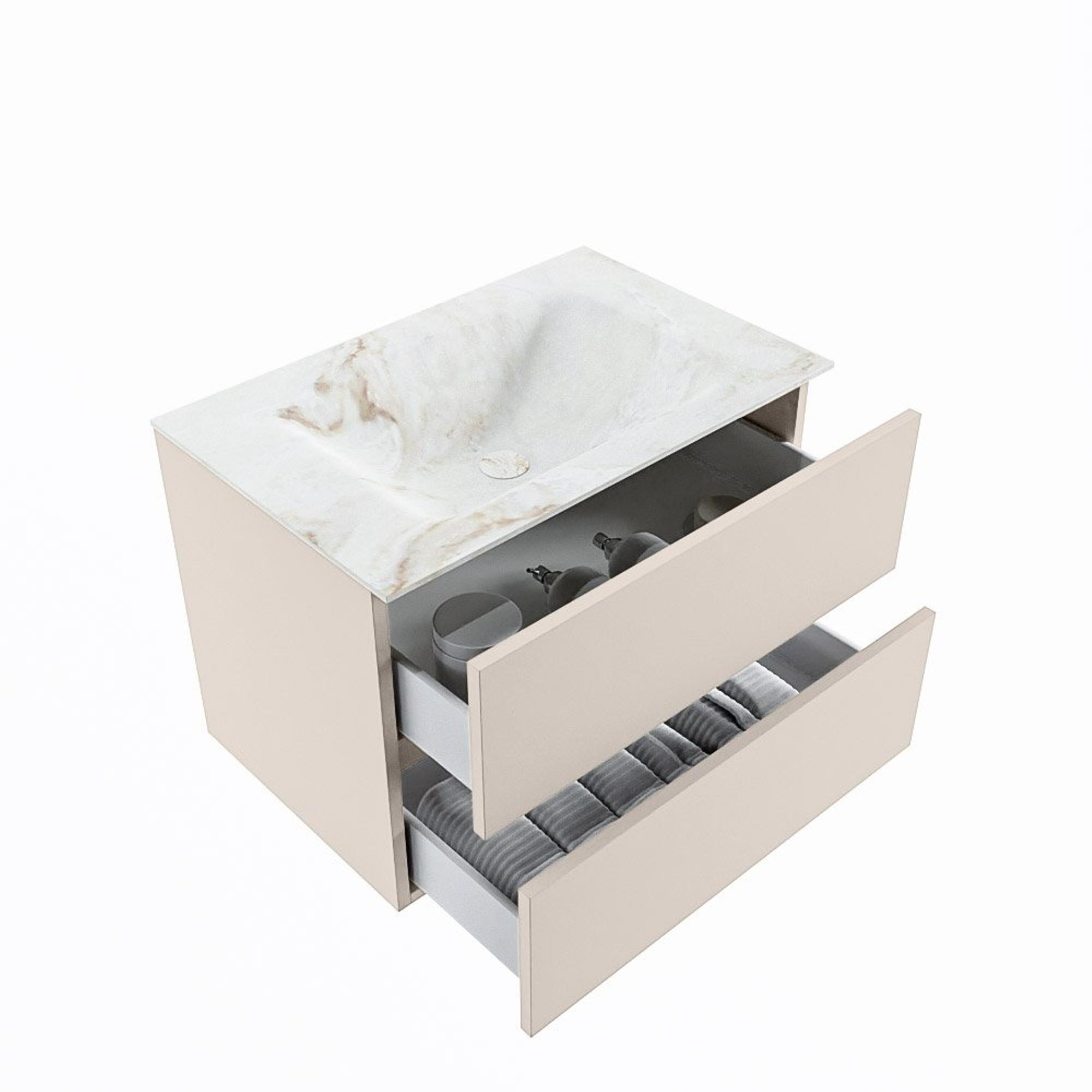 MONDIAZ VICA-DLUX Badkamermeubelset - 70cm - onderkast linen- 2 lades - inbouw wastafel cloud midden - zonder kraangaten - 60cm hoge versie - frape