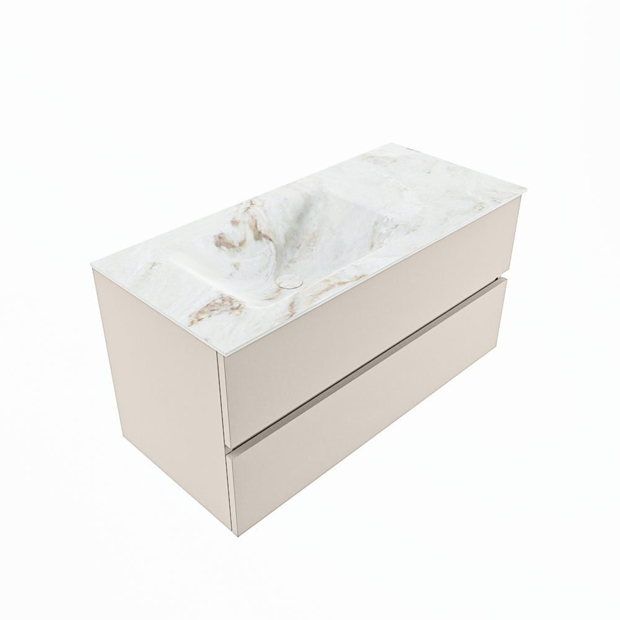 MONDIAZ VICA-DLUX Badkamermeubelset - 100cm - onderkast linen- 2 lades - inbouw wastafel cloud links - 1 kraangat - 60cm hoge versie - frape