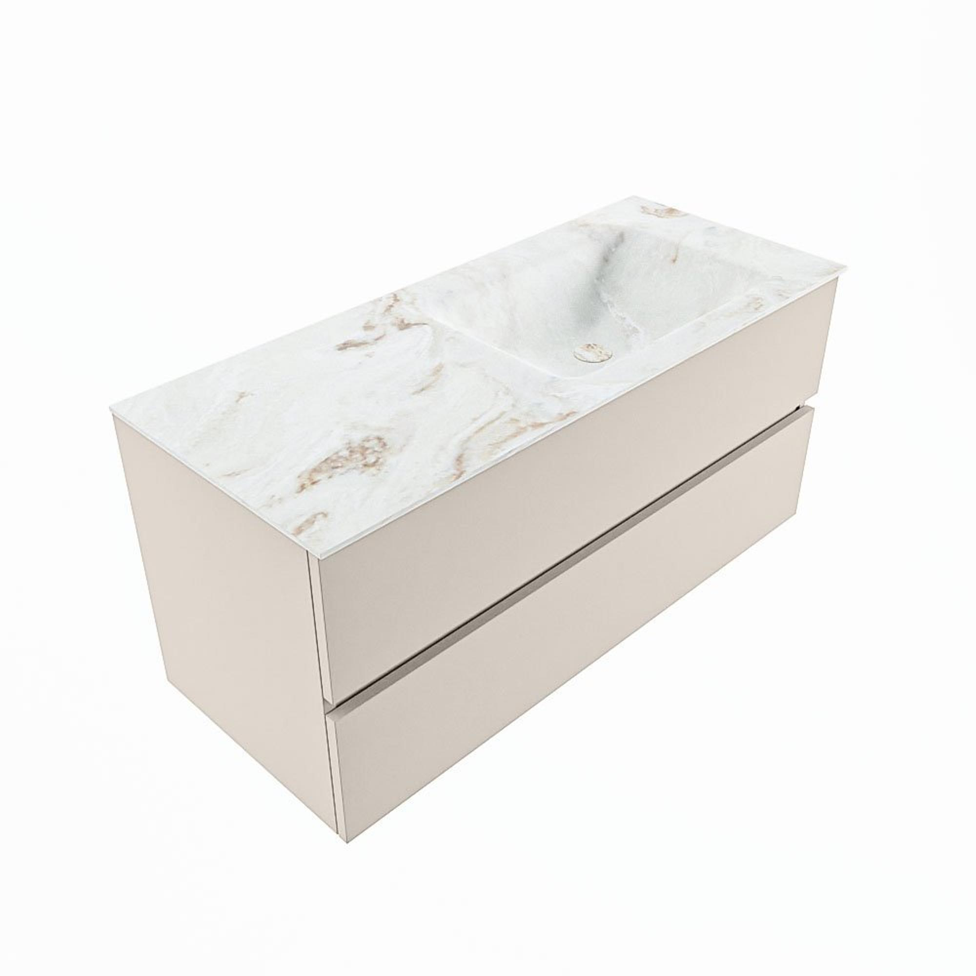 MONDIAZ VICA-DLUX Badkamermeubelset - 110cm - onderkast linen- 2 lades - inbouw wastafel cloud rechts - zonder kraangaten - 60cm hoge versie - frape