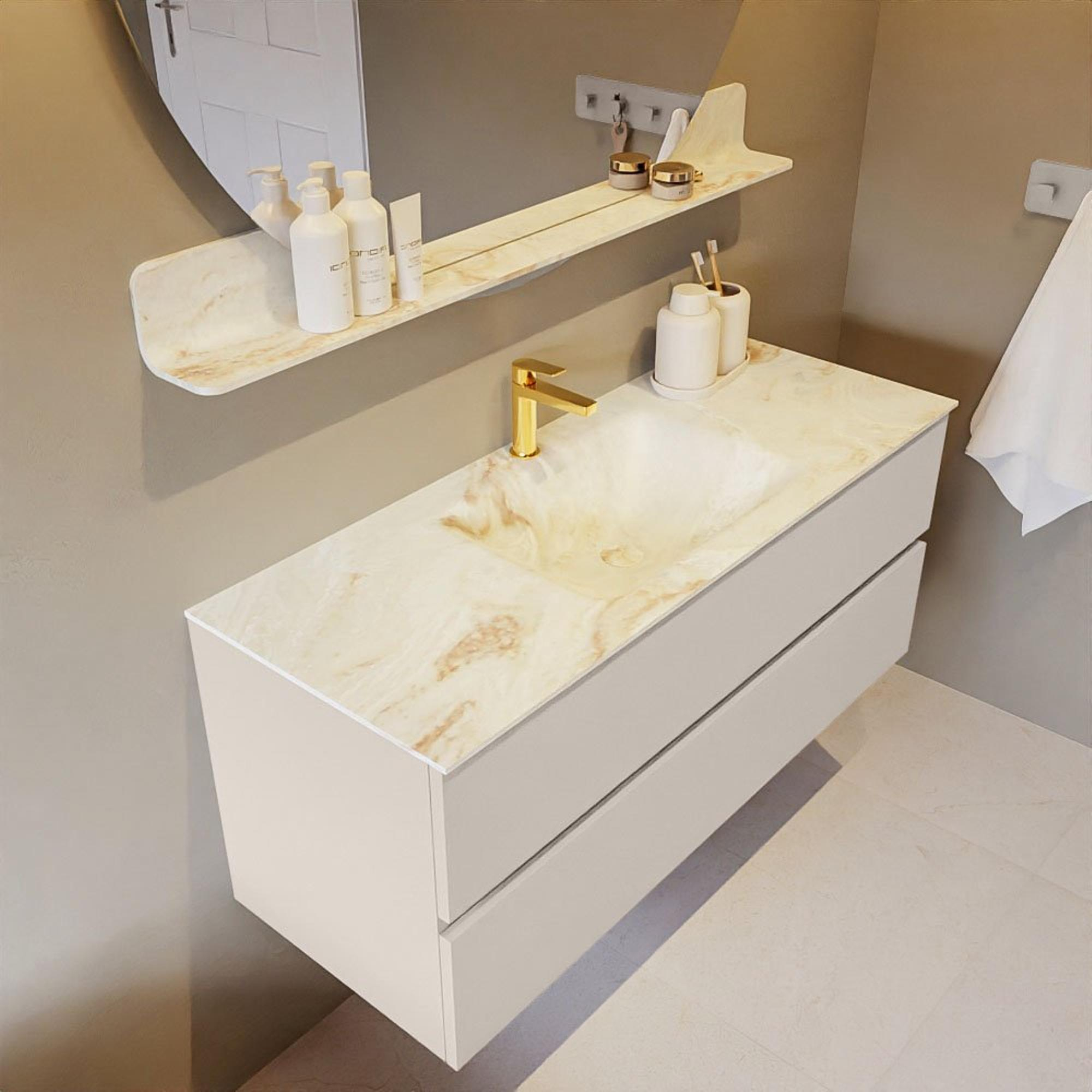 MONDIAZ VICA-DLUX Badkamermeubelset - 120cm - onderkast linen- 2 lades - inbouw wastafel cloud midden - 1 kraangat - 60cm hoge versie - frape