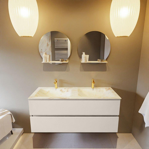 MONDIAZ VICA-DLUX Badkamermeubelset - 120cm - onderkast linen- 2 lades - inbouw wastafel cloud dubbel - 2 kraangaten - 60cm hoge versie - frape