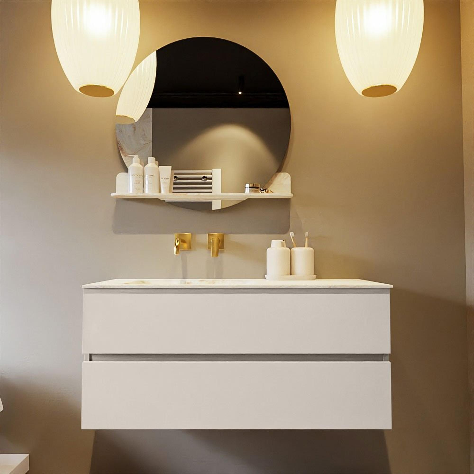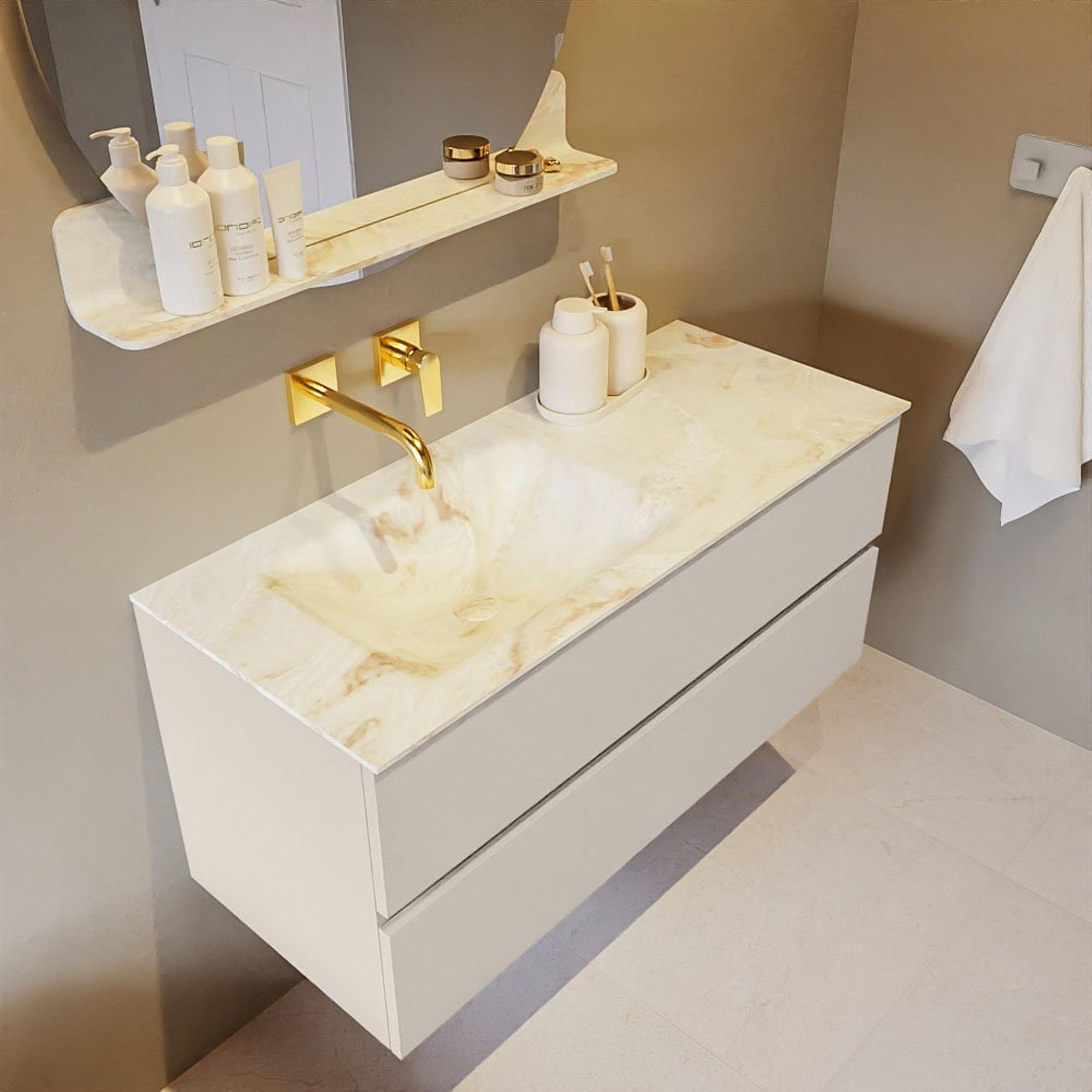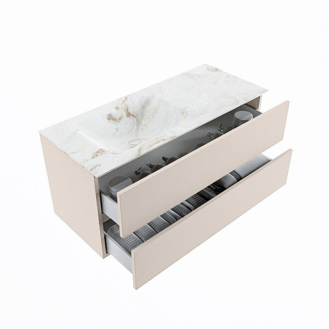MONDIAZ VICA-DLUX Badkamermeubelset - 110cm - onderkast linen- 2 lades - inbouw wastafel cloud links - zonder kraangaten - 60cm hoge versie - frape