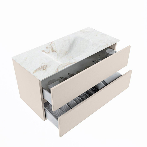 MONDIAZ VICA-DLUX Badkamermeubelset - 100cm - onderkast linen- 2 lades - inbouw wastafel cloud midden - 1 kraangat - 60cm hoge versie - frape