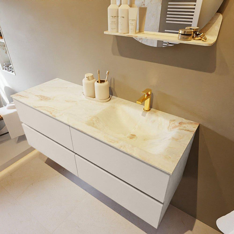 MONDIAZ VICA-DLUX Badkamermeubelset - 130cm - onderkast linen - 4 lades - inbouw wastafel cloud rechts - 1 kraangat - 60cm hoge versie - frape