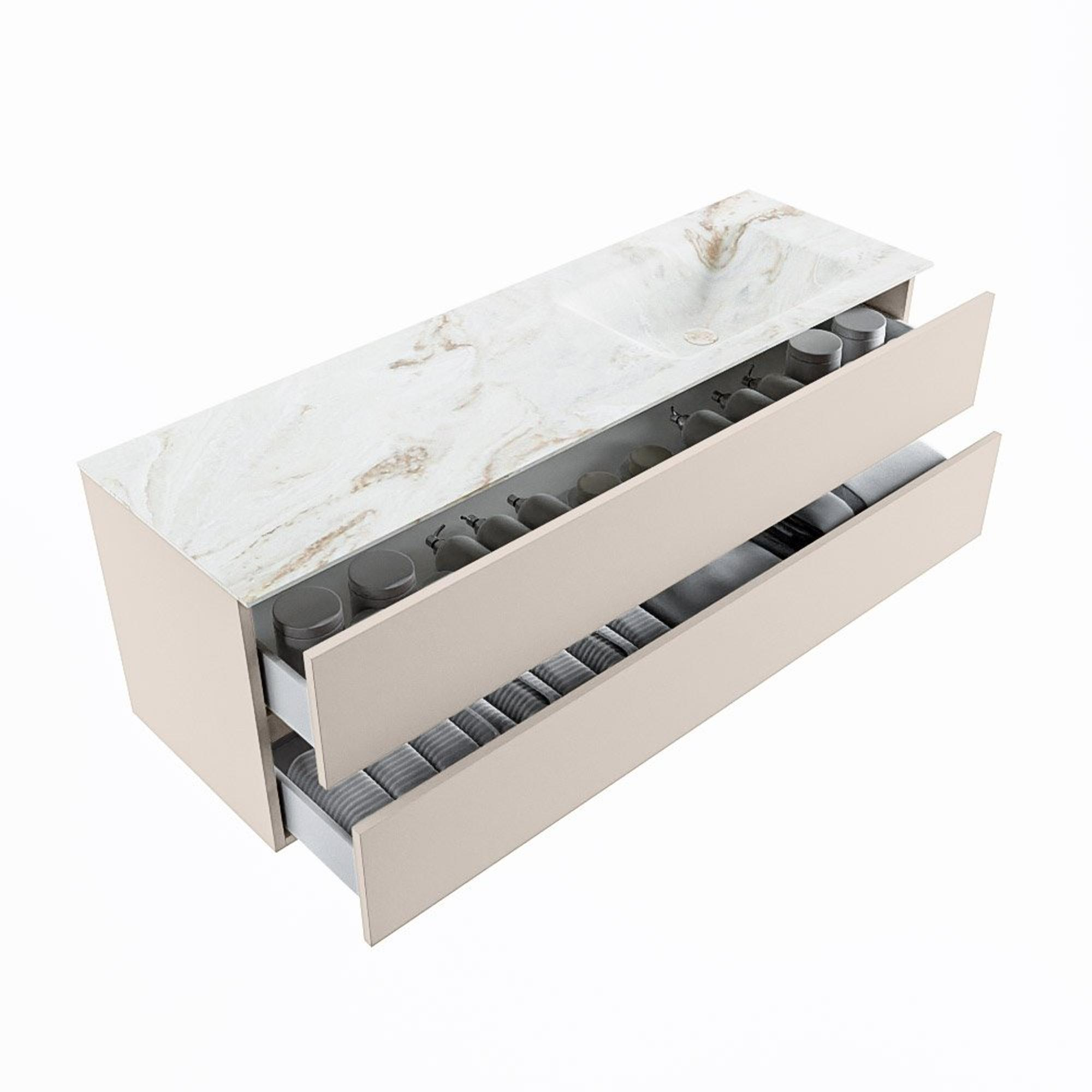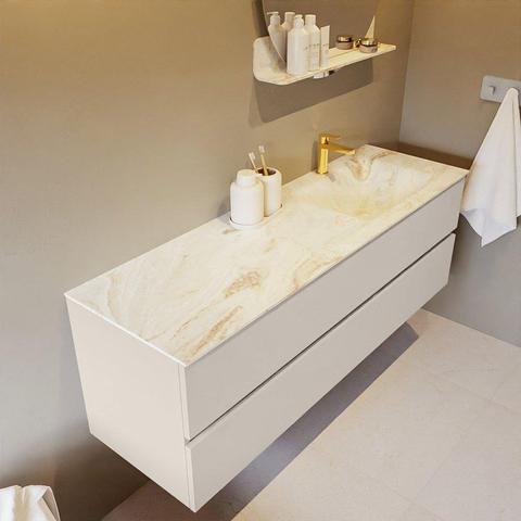 MONDIAZ VICA-DLUX Badkamermeubelset - 150cm - onderkast linen- 2 lades - inbouw wastafel cloud rechts - 1 kraangat - 60cm hoge versie - frape