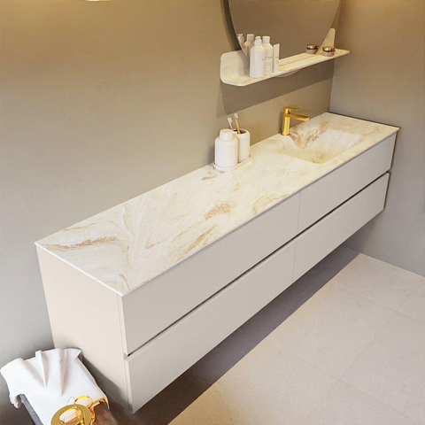 MONDIAZ VICA-DLUX Badkamermeubelset - 200cm - onderkast linen - 4 lades - inbouw wastafel cloud rechts - 1 kraangat - 60cm hoge versie - frape