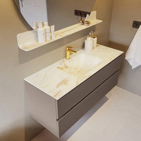 MONDIAZ VICA-DLUX Badkamermeubelset - 120cm - onderkast smoke- 2 lades - inbouw wastafel cloud midden - 1 kraangat - 60cm hoge versie - frape