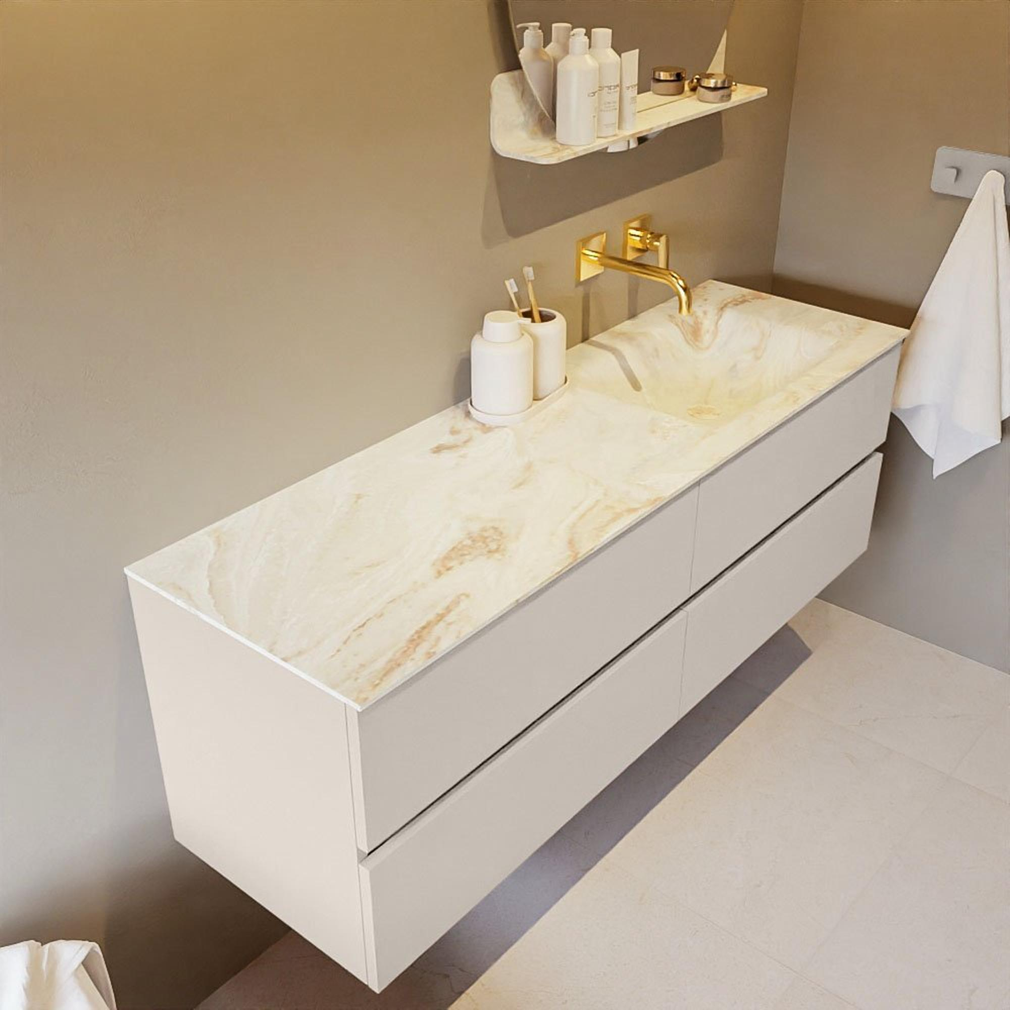 MONDIAZ VICA-DLUX Badkamermeubelset - 150cm - onderkast linen - 4 lades - inbouw wastafel cloud rechts - zonder kraangaten - 60cm hoge versie - frape