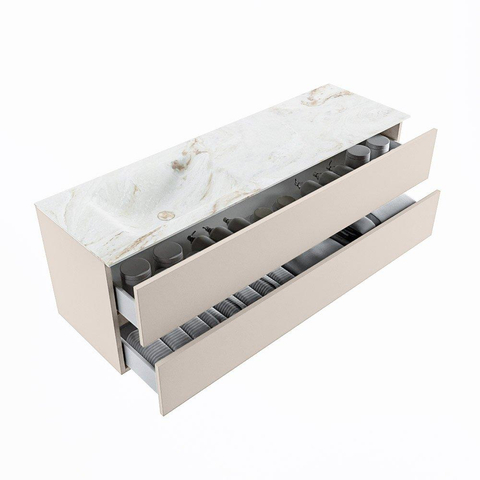 MONDIAZ VICA-DLUX Badkamermeubelset - 150cm - onderkast linen- 2 lades - inbouw wastafel cloud links - 1 kraangat - 60cm hoge versie - frape