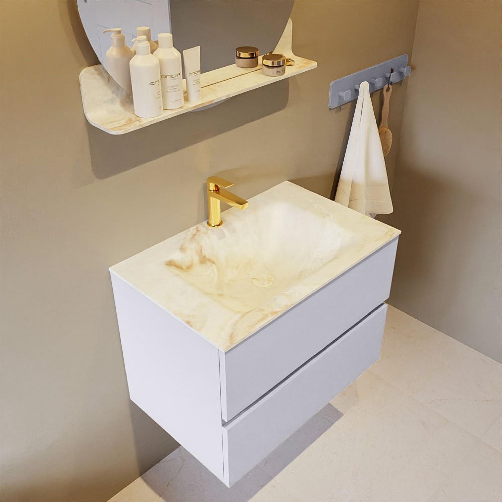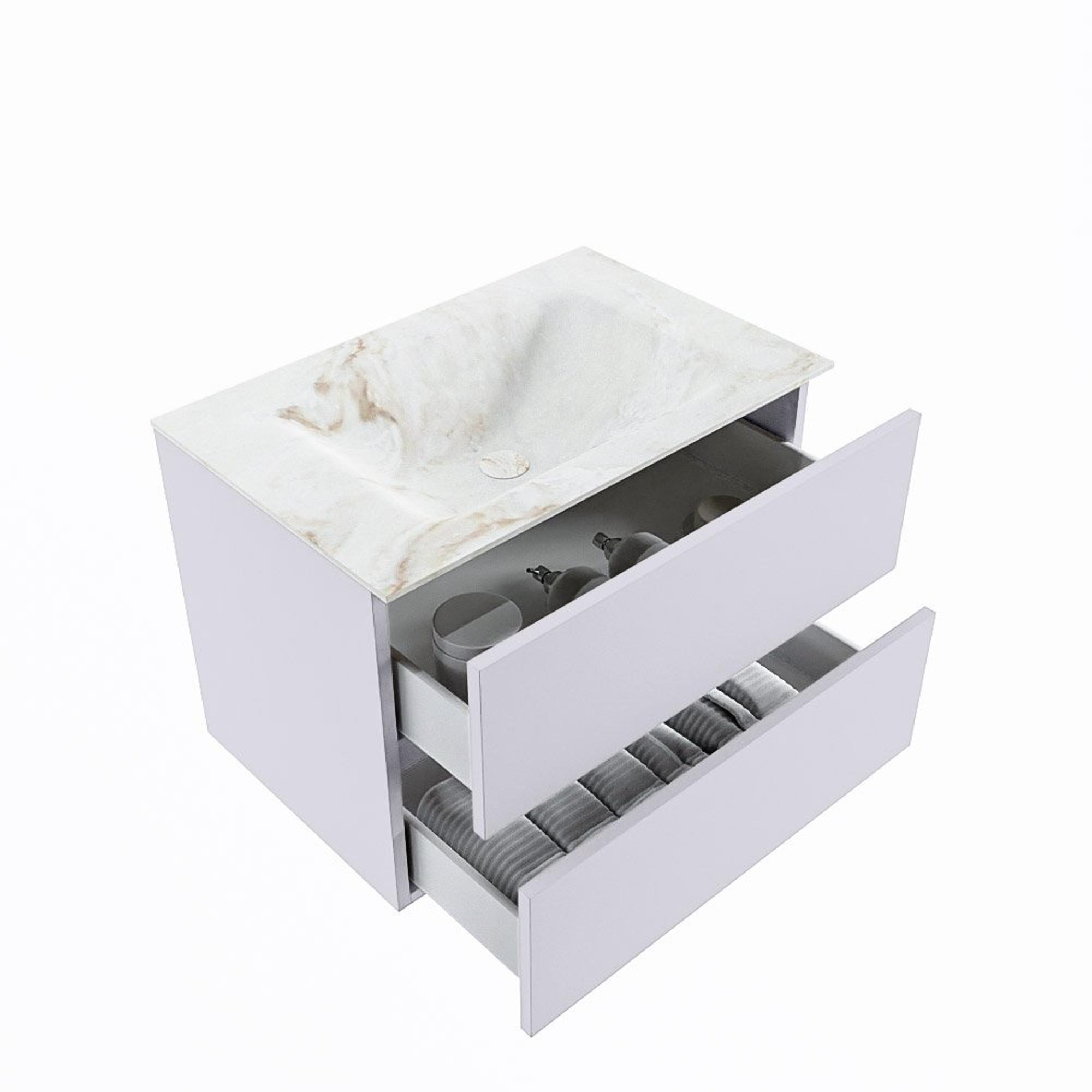 MONDIAZ VICA-DLUX Badkamermeubelset - 70cm - onderkast cale- 2 lades - inbouw wastafel cloud midden - 1 kraangat - 60cm hoge versie - frape