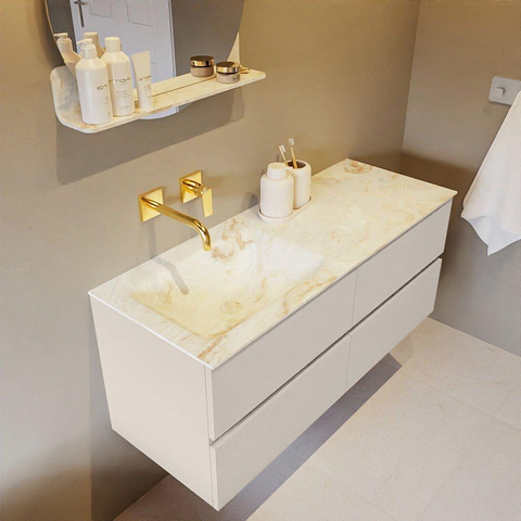 MONDIAZ VICA-DLUX Badkamermeubelset - 120cm - onderkast linen - 4 lades - inbouw wastafel cloud links - zonder kraangaten - 60cm hoge versie - frape