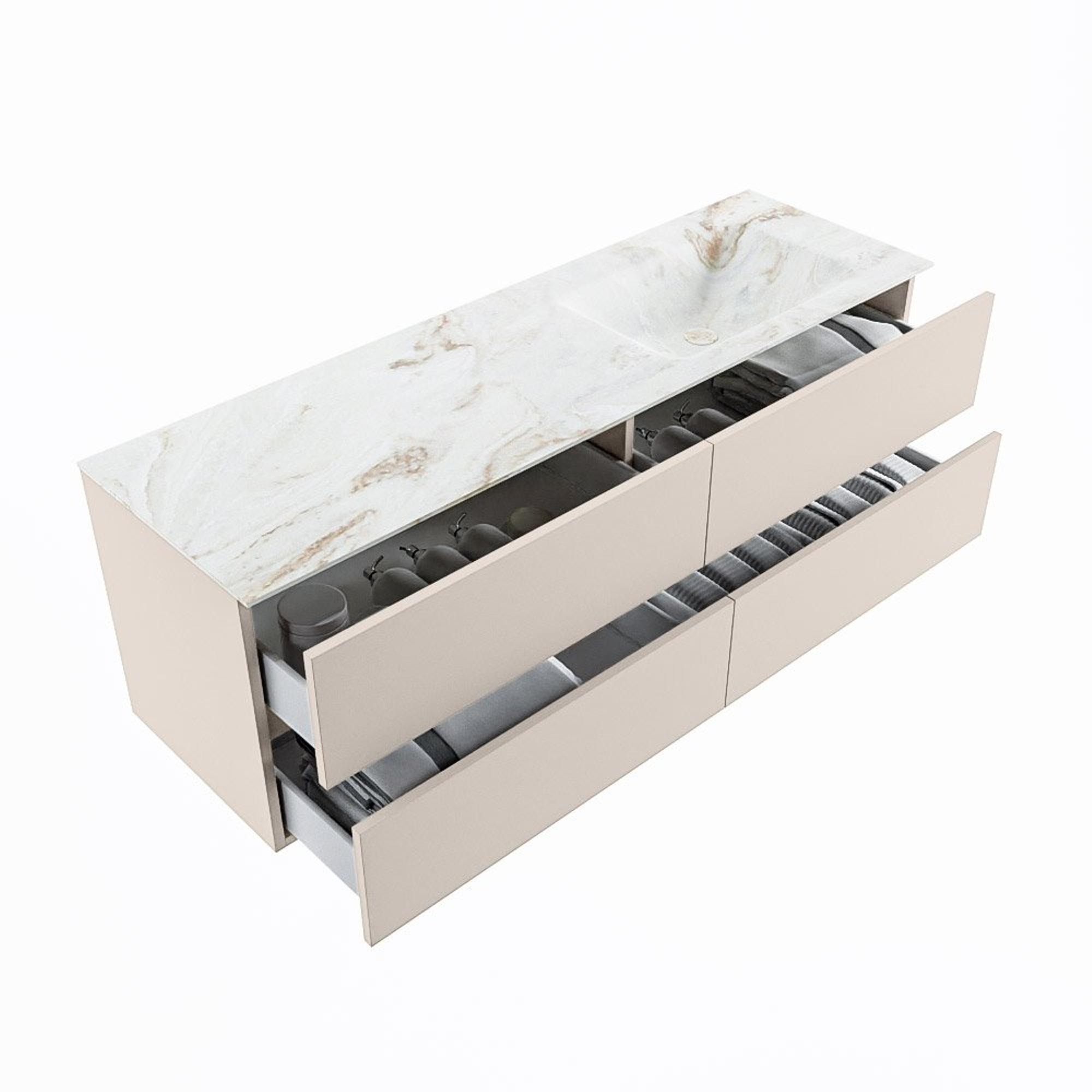 MONDIAZ VICA-DLUX Badkamermeubelset - 150cm - onderkast linen - 4 lades - inbouw wastafel cloud rechts - 1 kraangat - 60cm hoge versie - frape