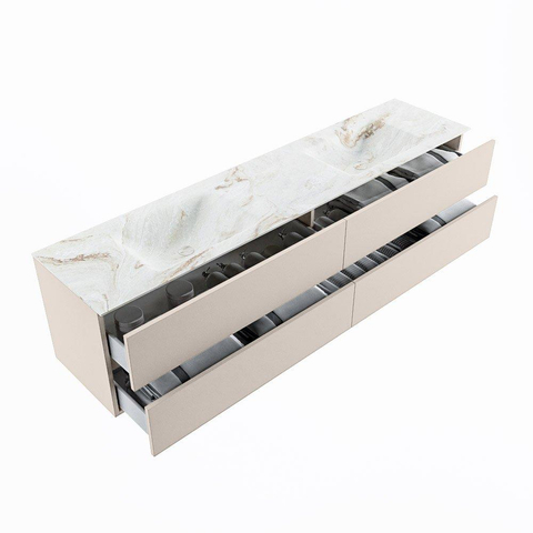 MONDIAZ VICA-DLUX Badkamermeubelset - 200cm - onderkast linen - 4 lades - inbouw wastafel cloud dubbel - 2 kraangaten - 60cm hoge versie - frape