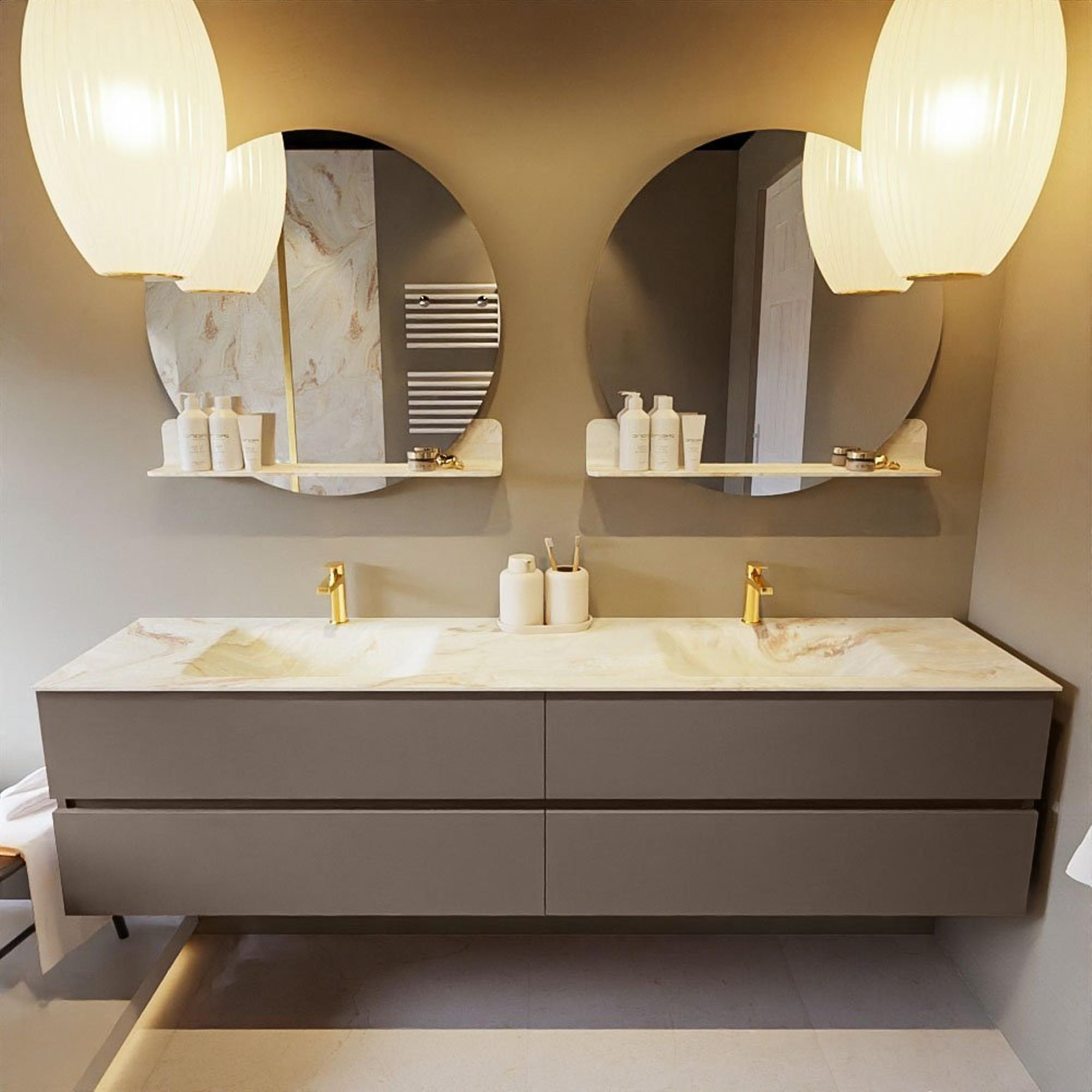 MONDIAZ VICA-DLUX Badkamermeubelset - 200cm - onderkast smoke - 4 lades - inbouw wastafel cloud dubbel - 2 kraangaten - 60cm hoge versie - frape