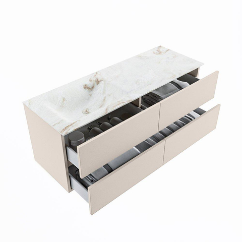 MONDIAZ VICA-DLUX Badkamermeubelset - 130cm - onderkast linen - 4 lades - inbouw wastafel cloud links - 1 kraangat - 60cm hoge versie - frape