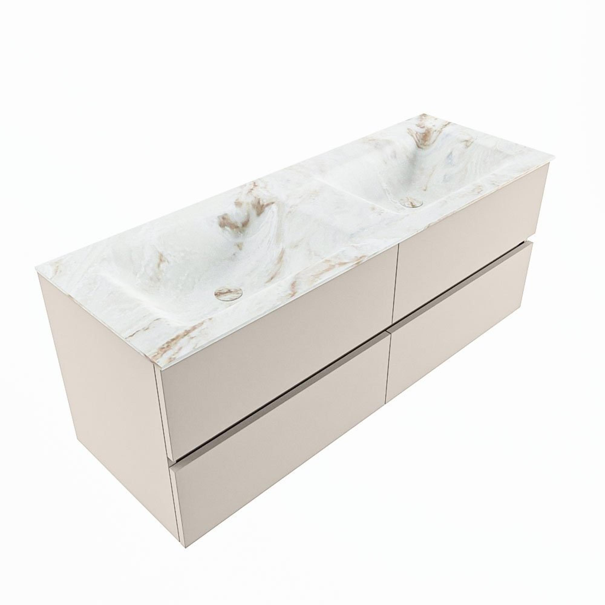 MONDIAZ VICA-DLUX Badkamermeubelset - 130cm - onderkast linen - 4 lades - inbouw wastafel cloud dubbel - zonder kraangaten - 60cm hoge versie - frape