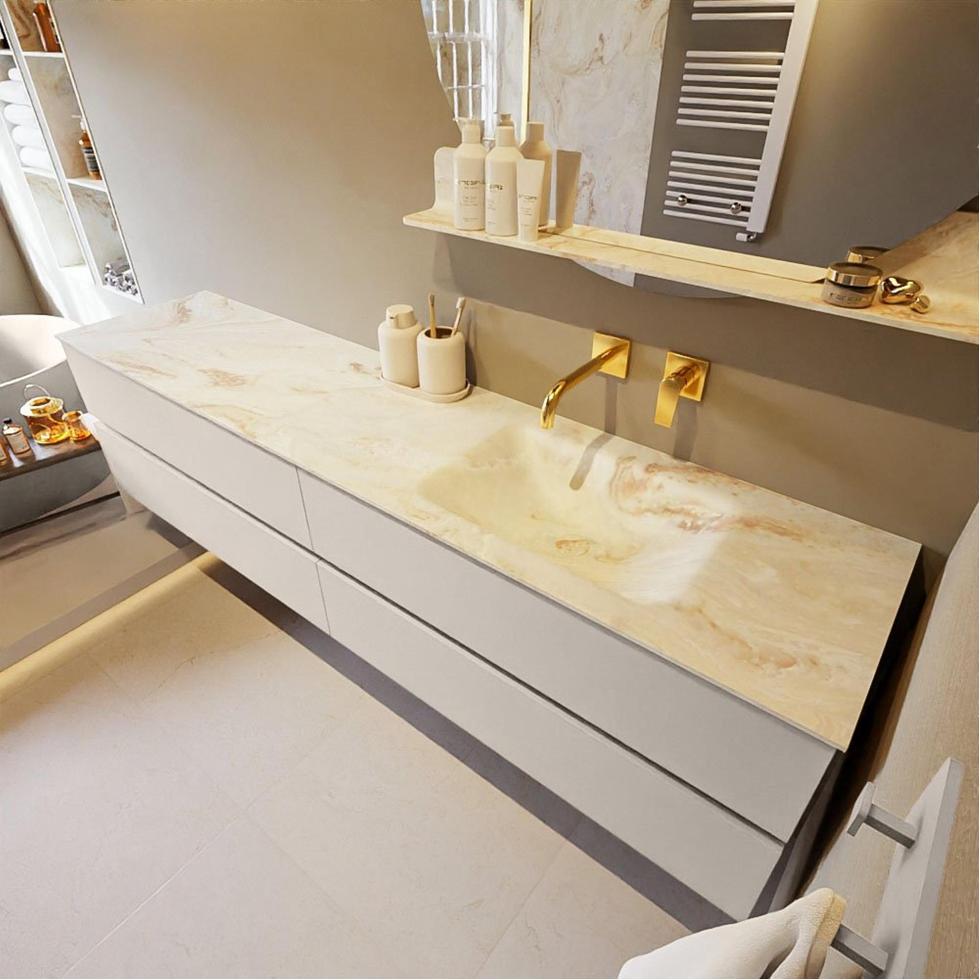 MONDIAZ VICA-DLUX Badkamermeubelset - 200cm - onderkast linen - 4 lades - inbouw wastafel cloud rechts - zonder kraangaten - 60cm hoge versie - frape