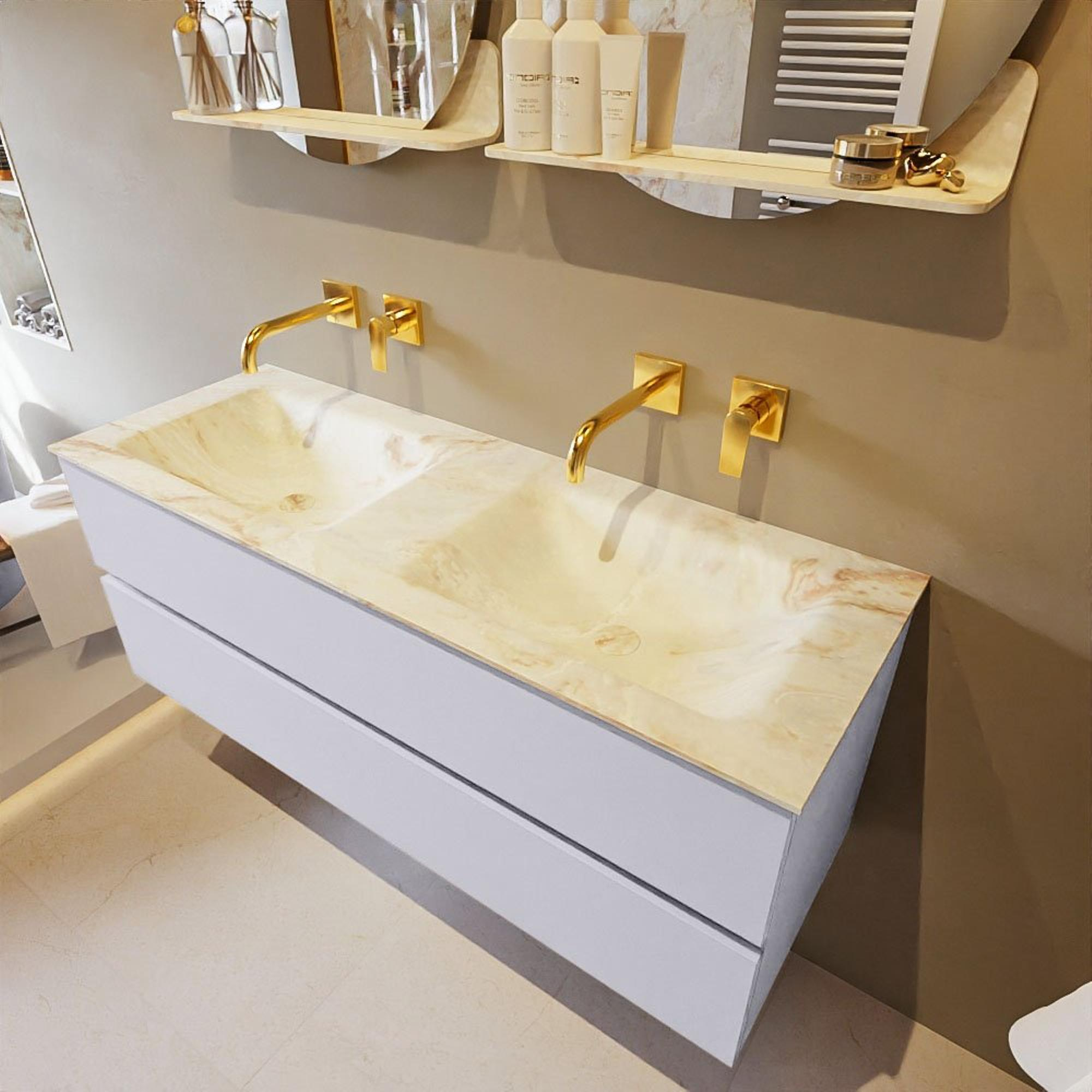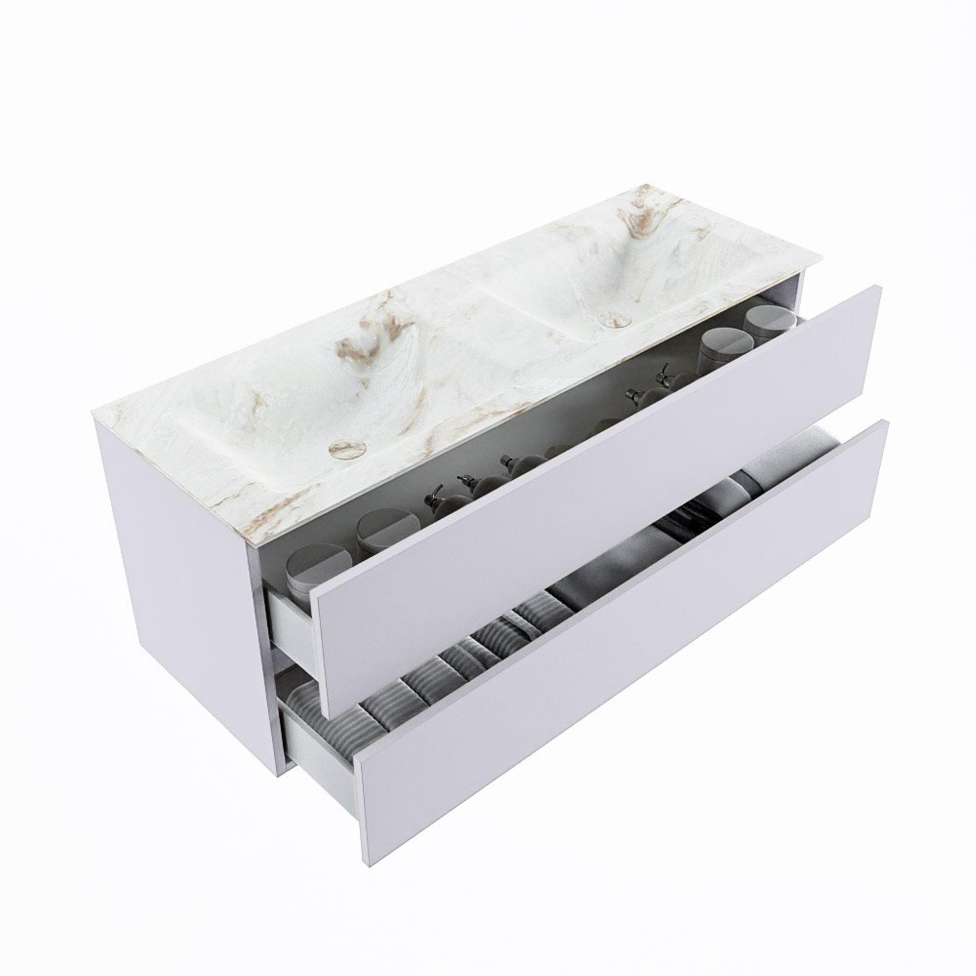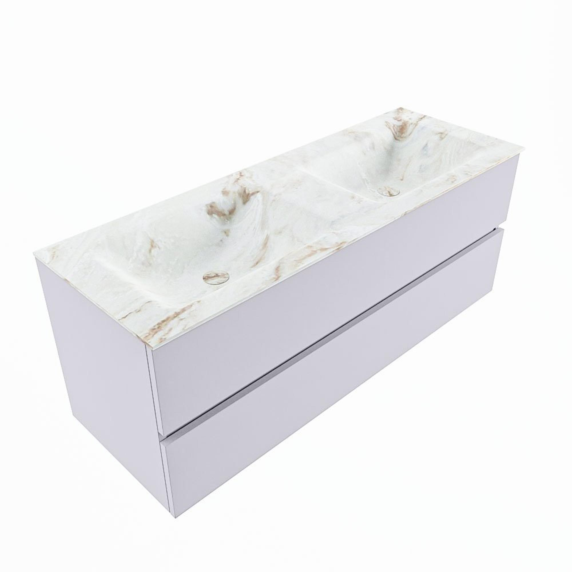 MONDIAZ VICA-DLUX Badkamermeubelset - 130cm - onderkast cale- 2 lades - inbouw wastafel cloud dubbel - zonder kraangaten - 60cm hoge versie - frape