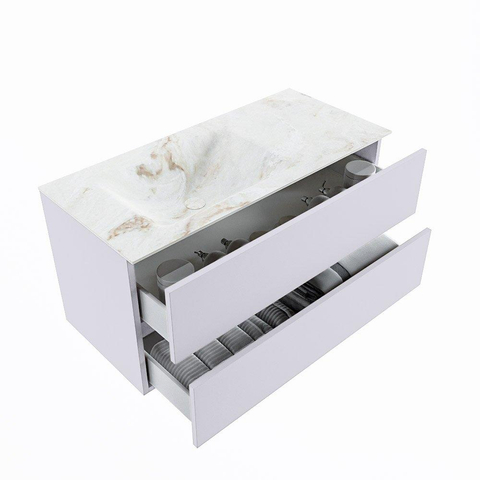 MONDIAZ VICA-DLUX Badkamermeubelset - 100cm - onderkast cale- 2 lades - inbouw wastafel cloud links - 1 kraangat - 60cm hoge versie - frape
