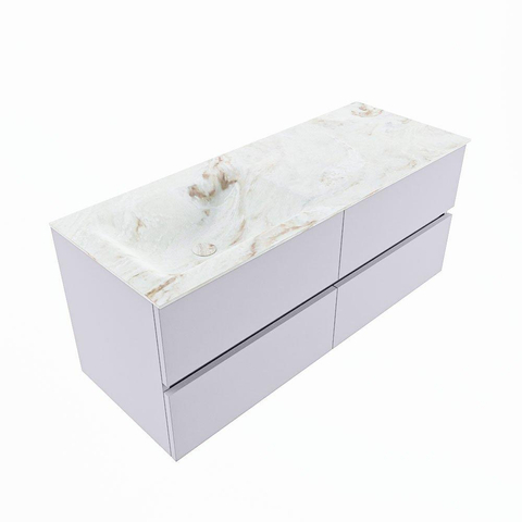 De buitengewone mooie badmeubel set VICA DLUX is een schitterend pronkstuk in uw badkamer. De gemarmerde Solid surface wastafel van CORIAN heeft een fraaie en tijdloze uitstraling. Door de zachte en natuurlijke vorm van de wastafel, gecombineerd met de tijdloze en prachtige badmeubel onderkast past de VICA-DLUX goed bij de diverse stijlen badkamers. Om uw badkamer compleet te af te stijlen hebben wij ook de nissen en spiegelhouders in dezelfde kleur als de wastafel. Zoals de Mondiaz nissen en spiegel planchetten. De serie VICA DLUX bestaat uit de 2 of 4 laden onderkast VICA gecombineerd met een CORIAN Solid surface wastafel met marmer structuur. De Solid surface CORIAN wastafel is in 5 marmer looks verkrijgbaar. Met deze badkamermeubel set heeft u wel die mooie marmeren uitstraling maar tevens ook het gemak en de hygiëne van Solid surface. Let op: U ziet bij de XL (60cm) variant de afbeeldingen/video's van de standaard hoogte (50cm)