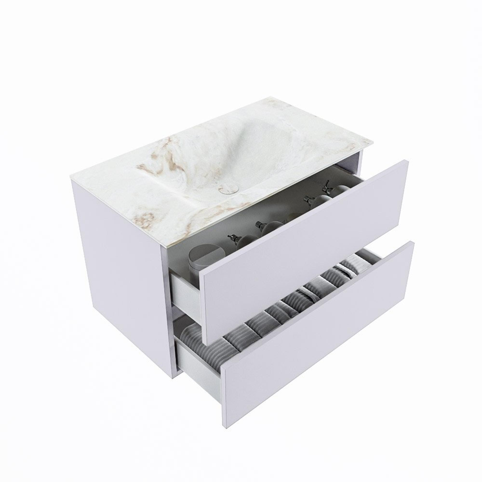 MONDIAZ VICA-DLUX Badkamermeubelset - 80cm - onderkast cale- 2 lades - inbouw wastafel cloud midden - 1 kraangat - 60cm hoge versie - frape