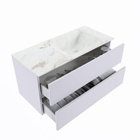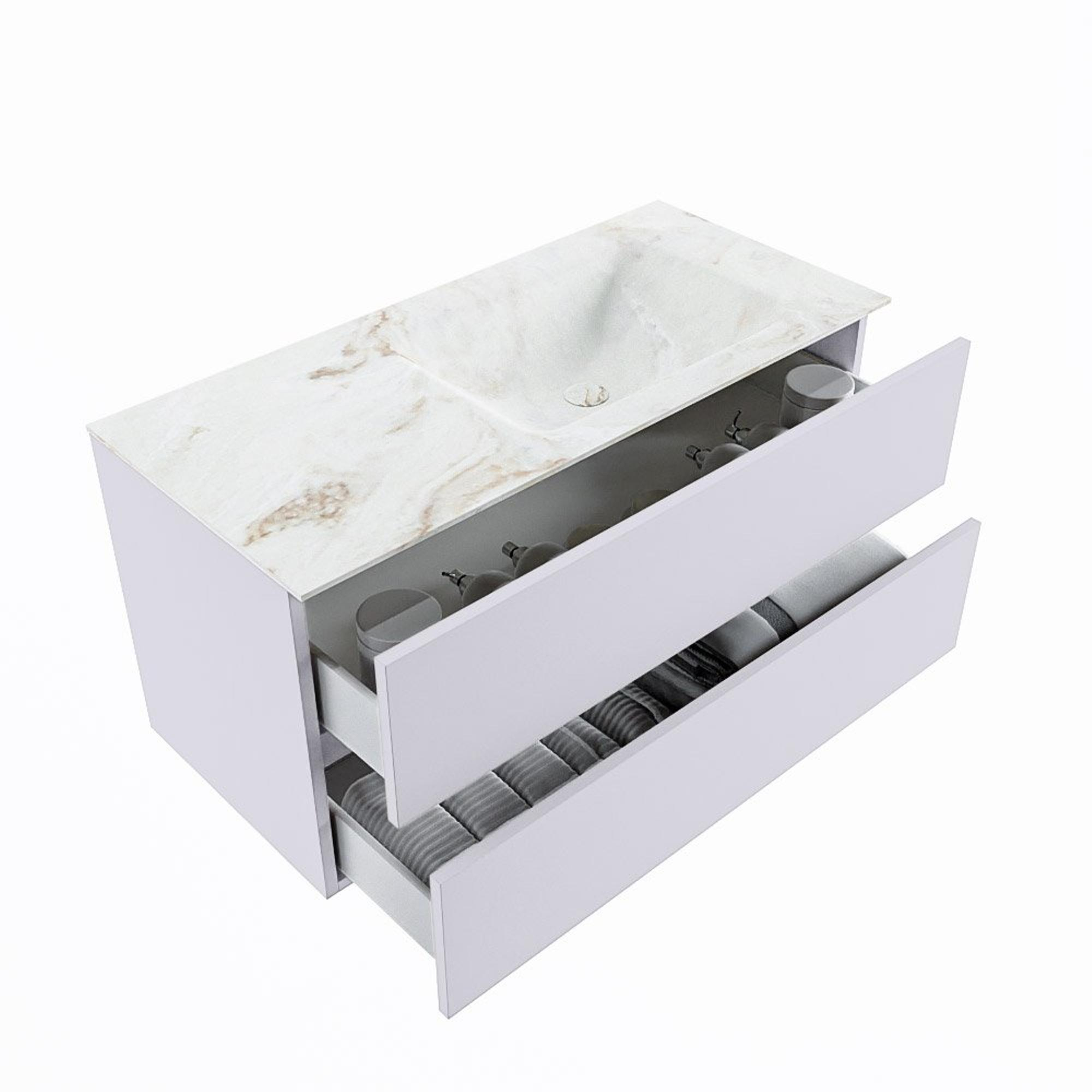 MONDIAZ VICA-DLUX Badkamermeubelset - 100cm - onderkast cale- 2 lades - inbouw wastafel cloud rechts - zonder kraangaten - 60cm hoge versie - frape