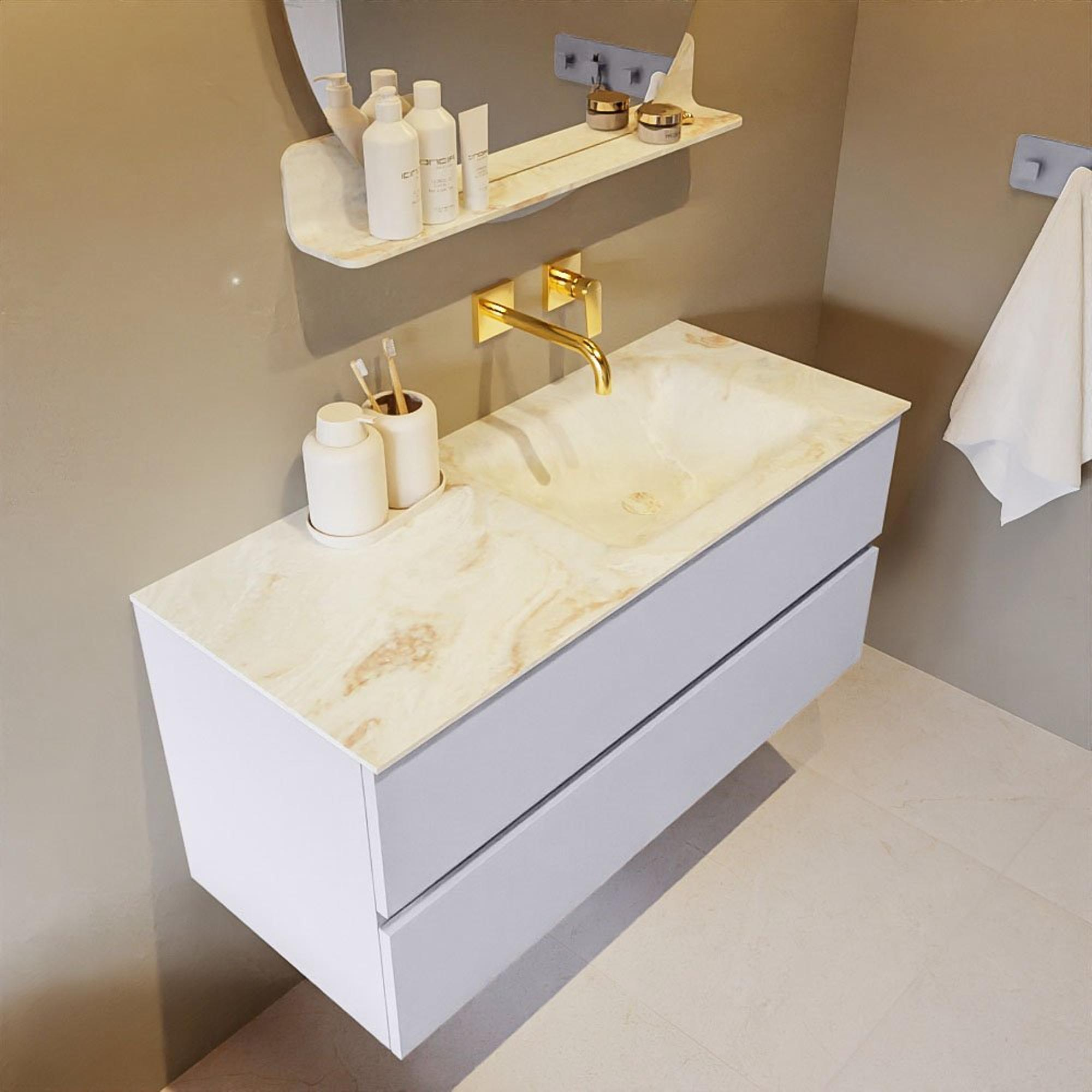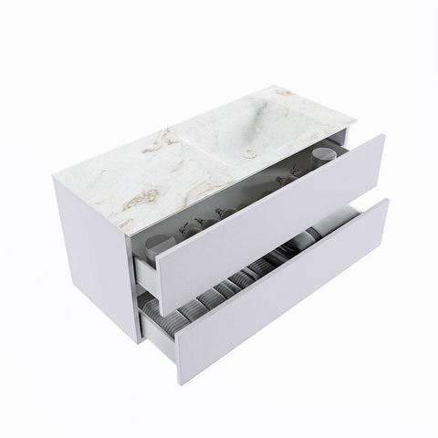 MONDIAZ VICA-DLUX Badkamermeubelset - 110cm - onderkast cale- 2 lades - inbouw wastafel cloud rechts - zonder kraangaten - 60cm hoge versie - frape