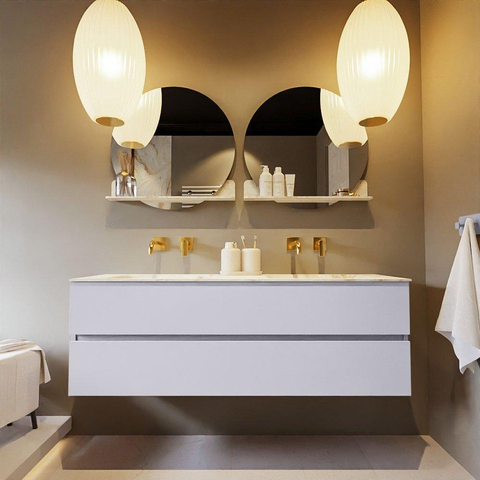 MONDIAZ VICA-DLUX Badkamermeubelset - 150cm - onderkast cale- 2 lades - inbouw wastafel cloud dubbel - zonder kraangaten - 60cm hoge versie - frape